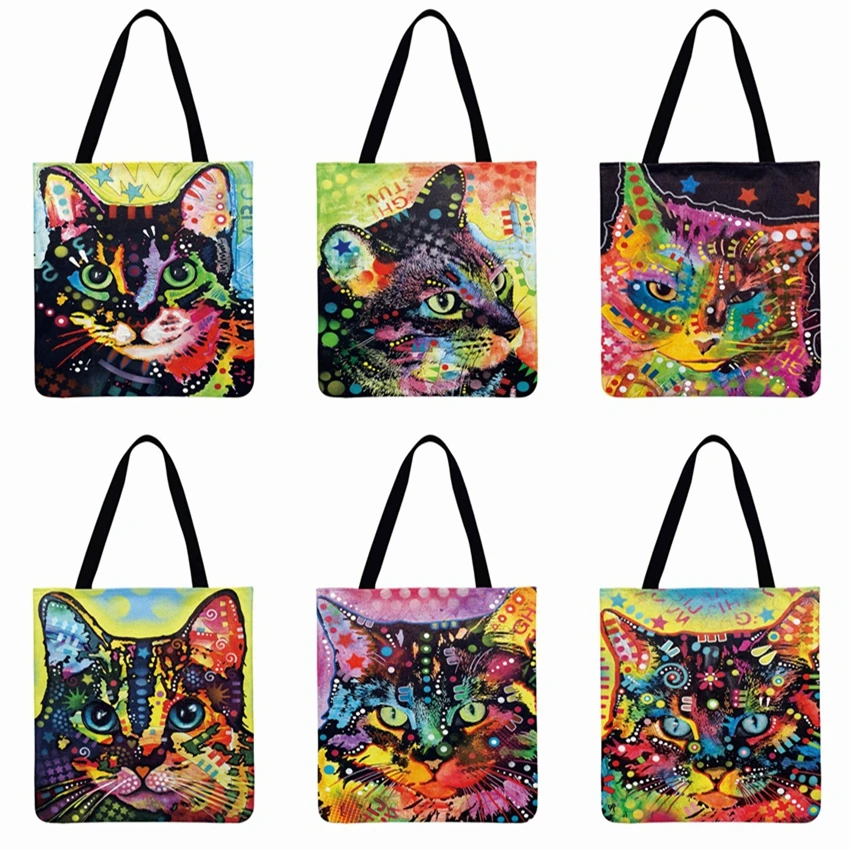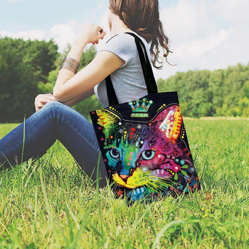 Сумка-тоут женская с абстрактным акварельным принтом, неоновая Повседневная Складная пляжная сумочка-тоут для покупок, из фланели