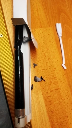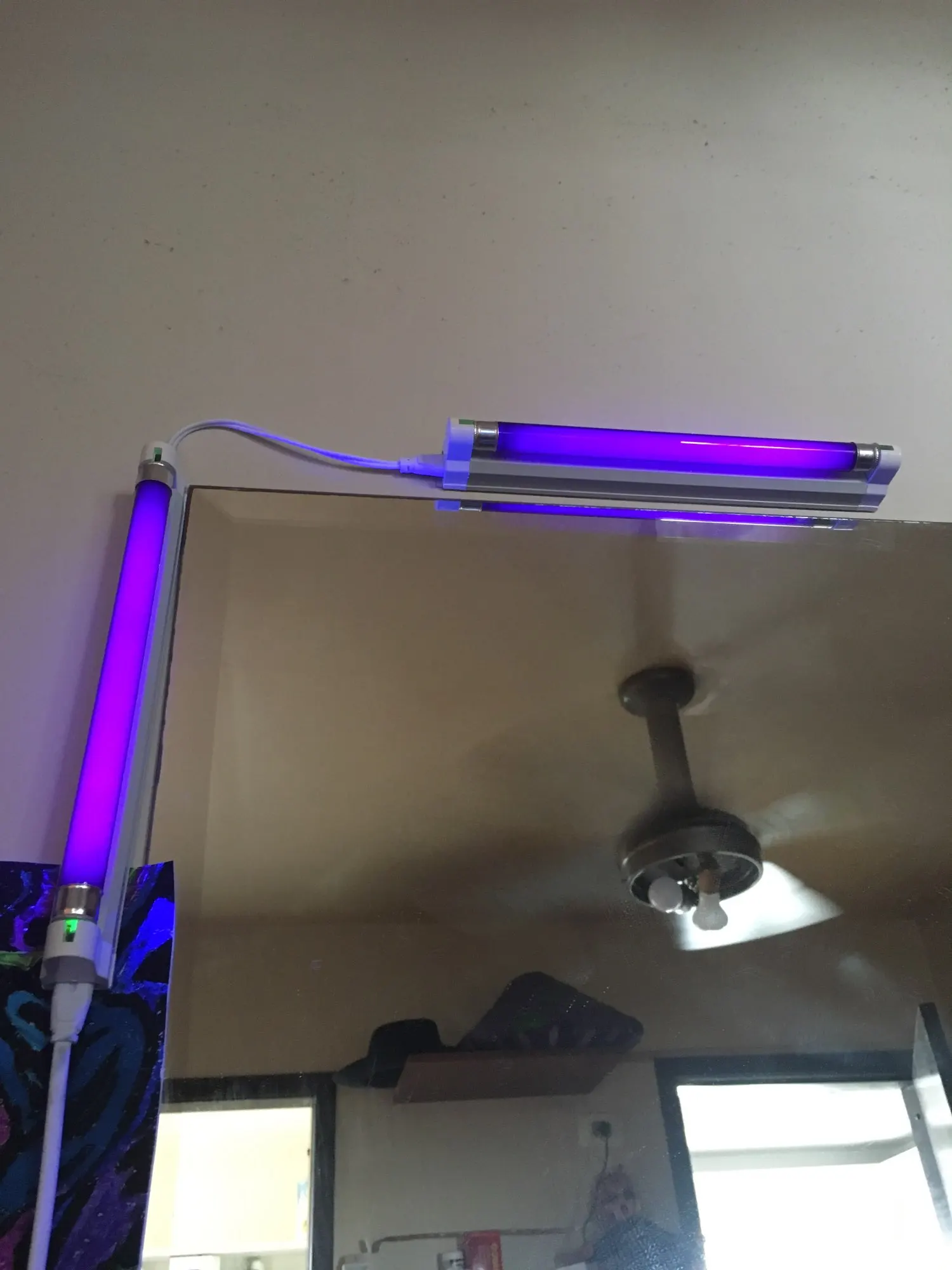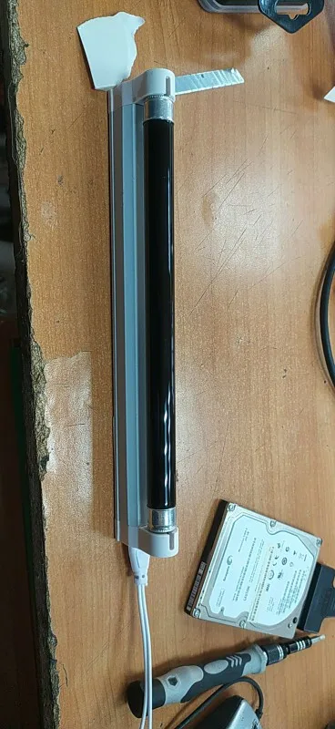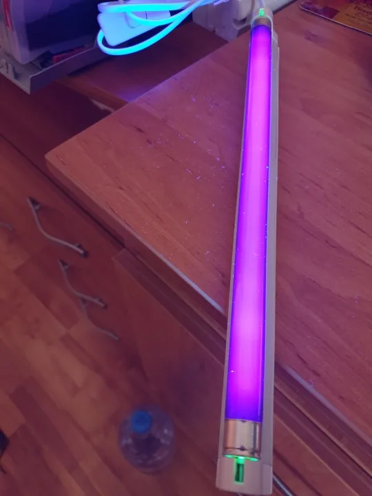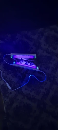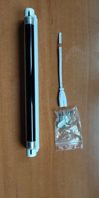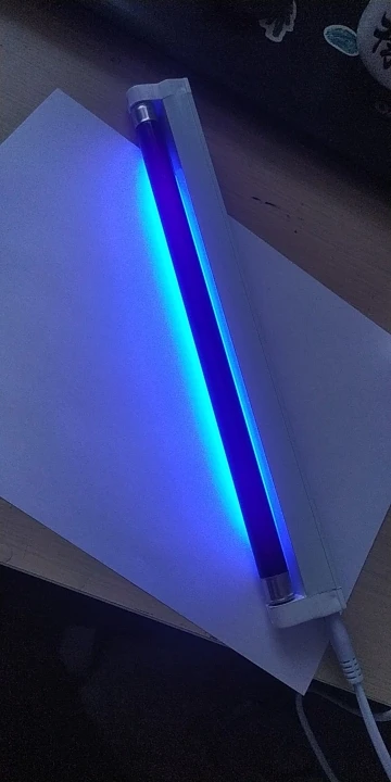 Доставка в Челябинскую область 3 недели. Упаковано хорошо, пришло все цело. Только крепление почему-то одно, зато саморезов 3 шт. Светит на заявленные 8 Вт (не стоит ждать что она осветит комнату 20 м2). Заявленные 365 нм выдает, подсвечивает то, что при обычном освещении не заметно.