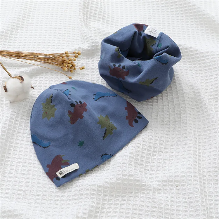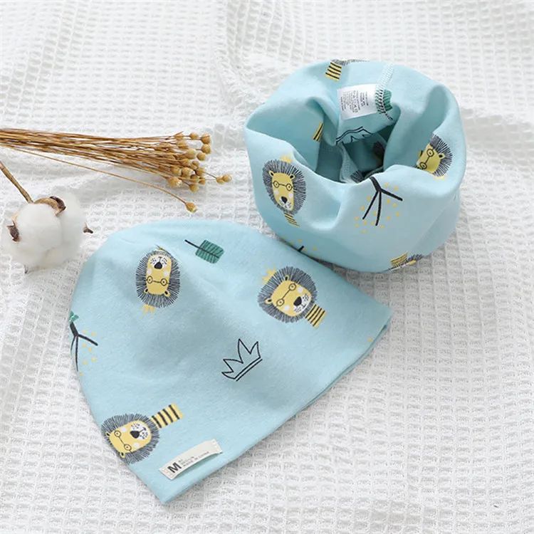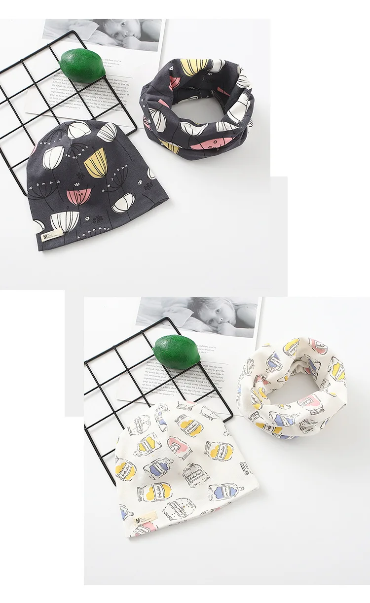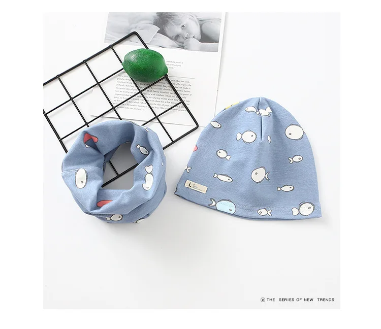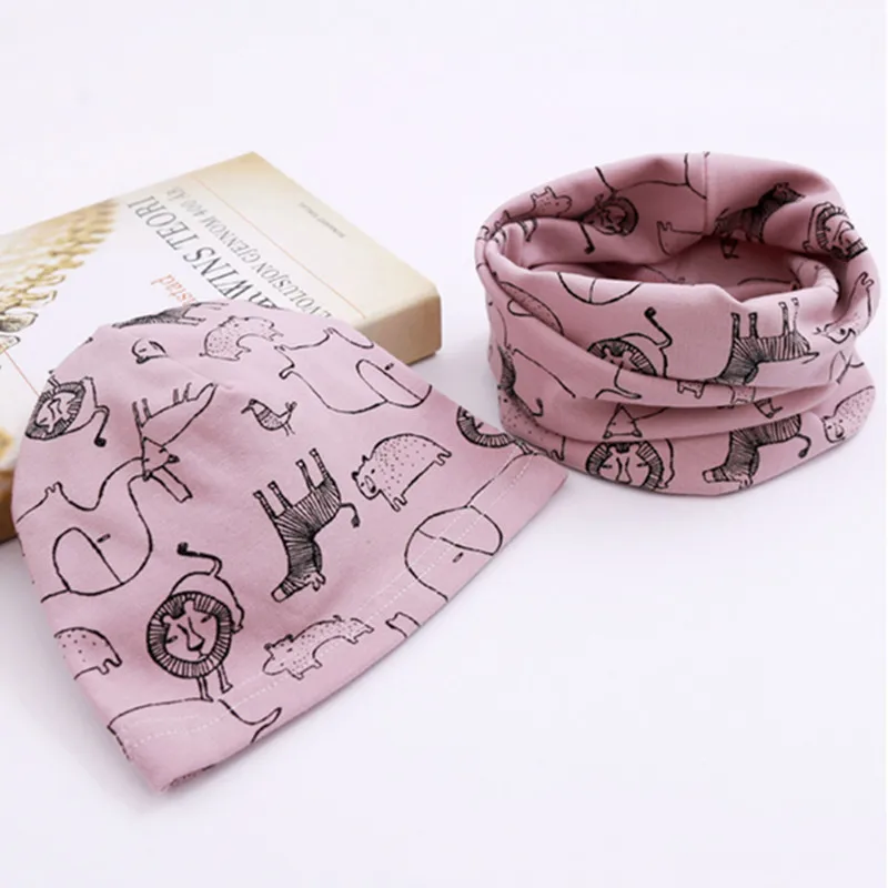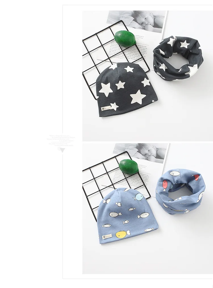 Комплект весенней детской шапки с мультяшным рисунком для мальчиков и девочек, шапка с кольцевым воротником, детский шейный платок, шапочки, теплая хлопковая детская шапка, шарф, комплект из двух предметов