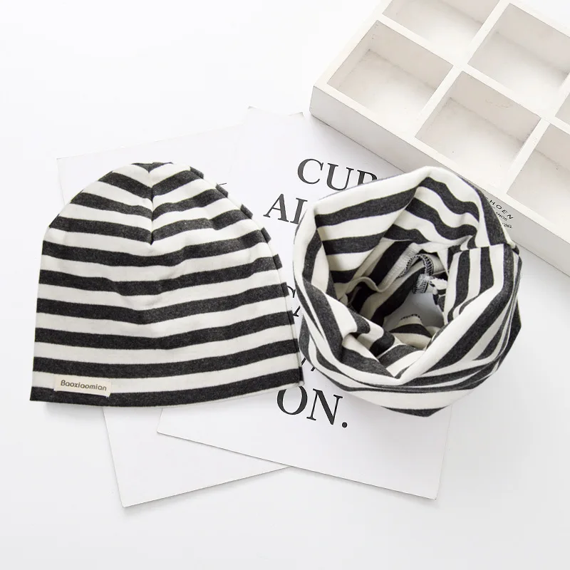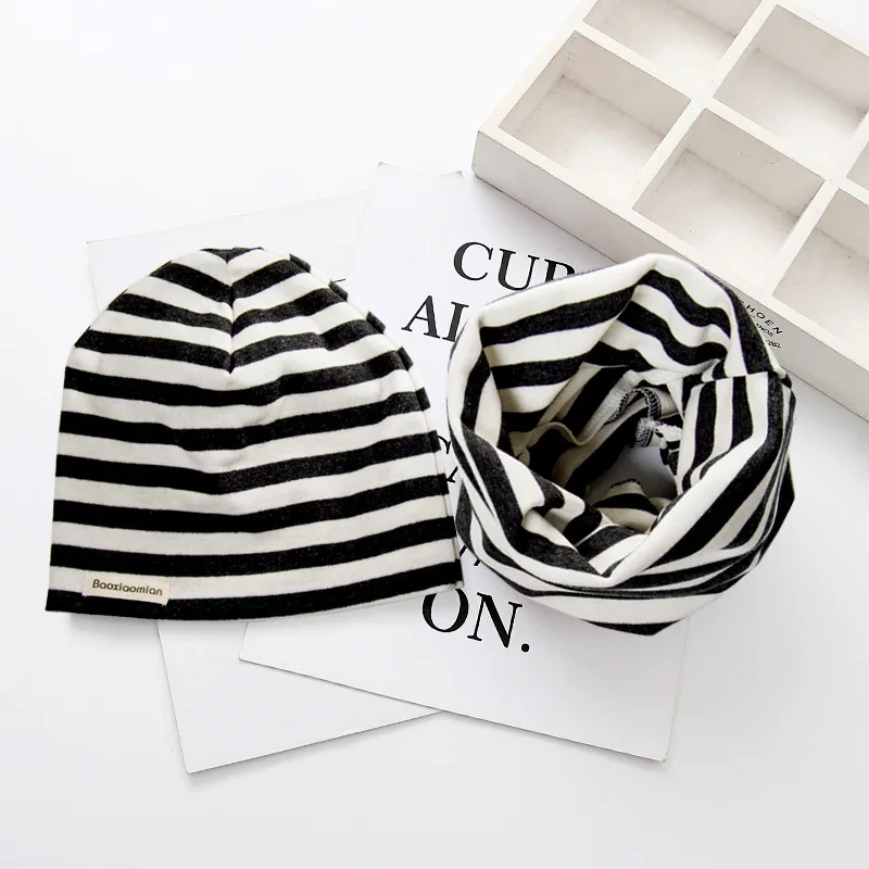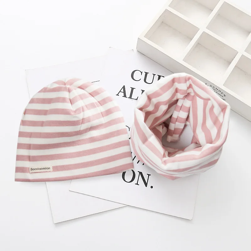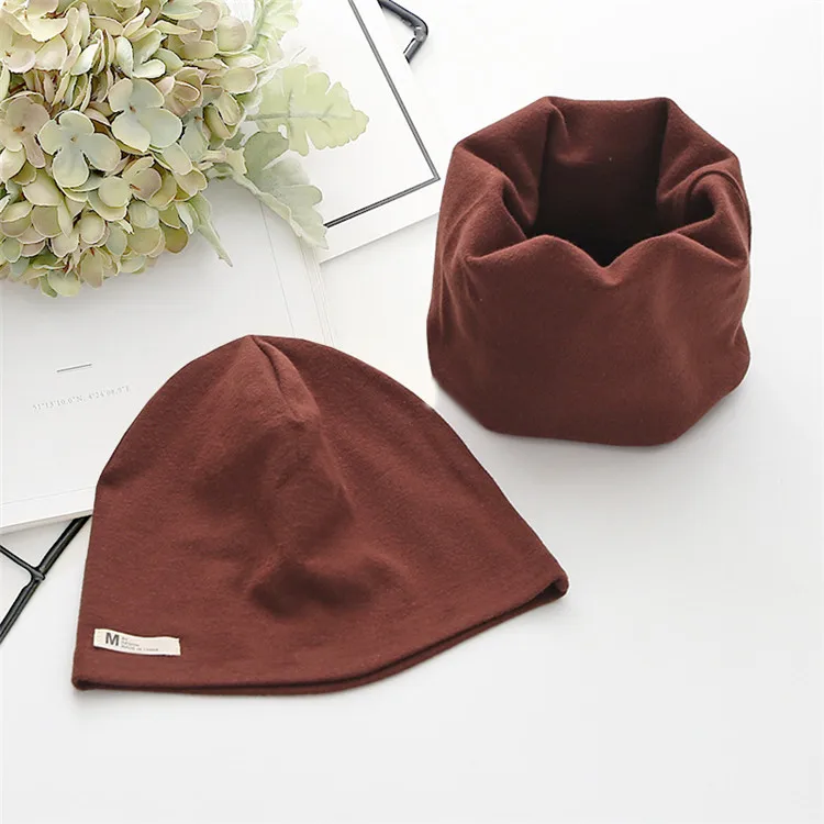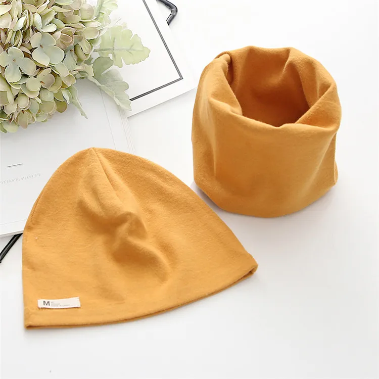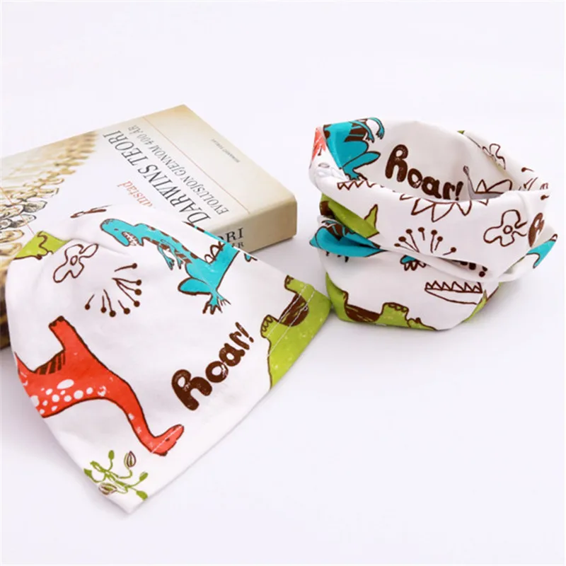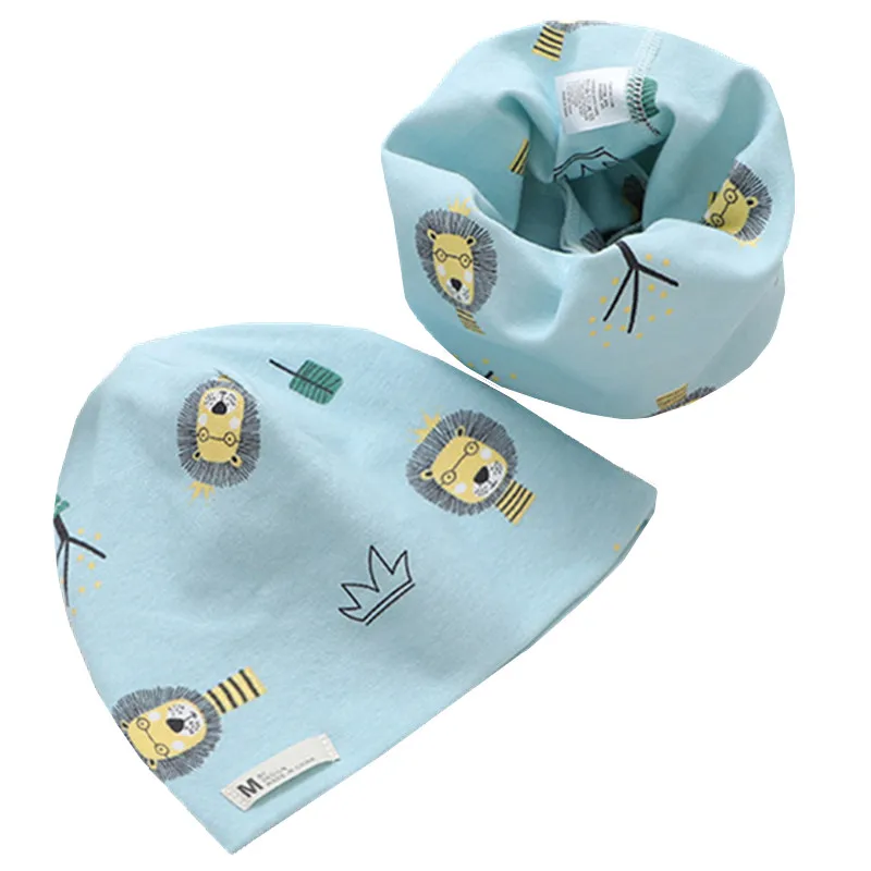 Комплект весенней детской шапки с мультяшным рисунком для мальчиков и девочек, шапка с кольцевым воротником, детский шейный платок, шапочки, теплая хлопковая детская шапка, шарф, комплект из двух предметов
