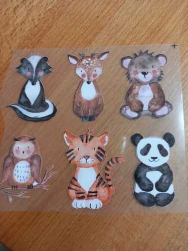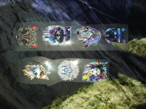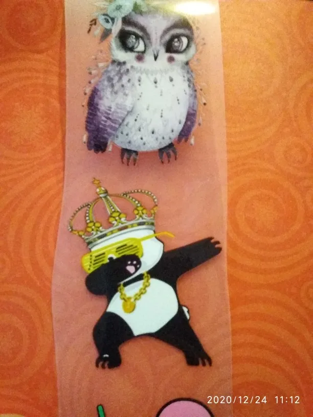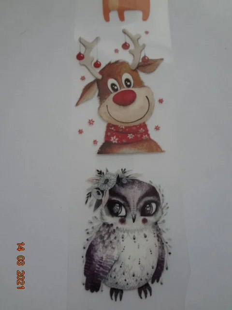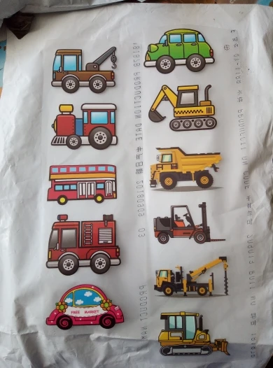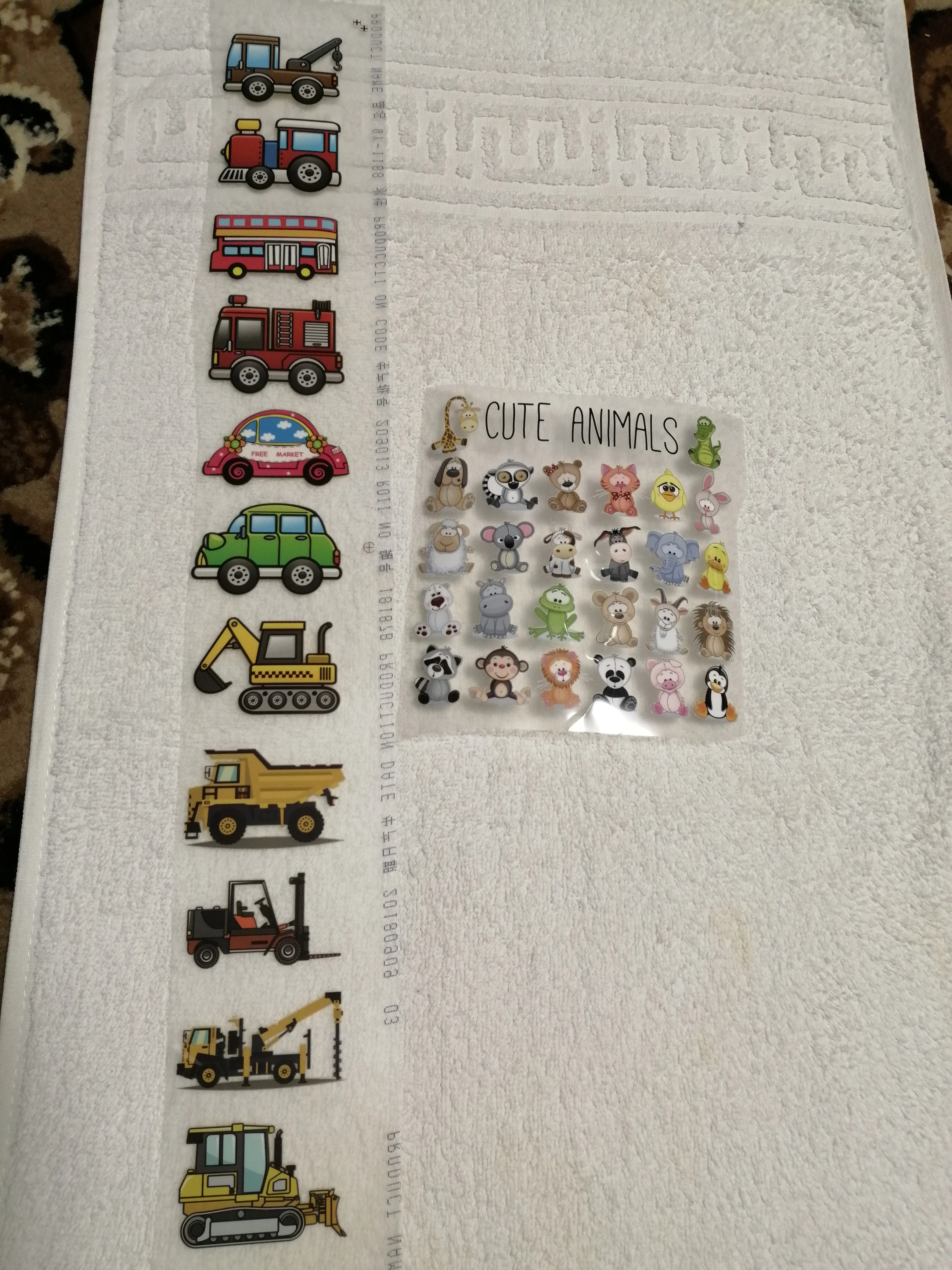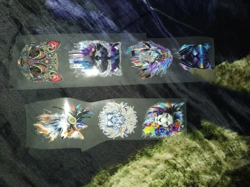 Картинки яркие симпатичные. на одежду ещё не наносила. Пришли в пакетике намотанные на полиэтиленовый валик, очень быстро . Продавца рекомендую.