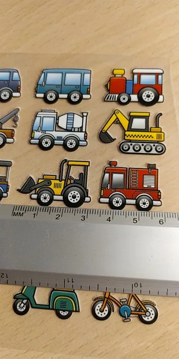 Ну сами наклейки симпатичные. Примерно 5*5 см( может чуть больше) пробовала наклеить одну, через 30 минут после того как сын надел футболку она начала немного отклеиватся