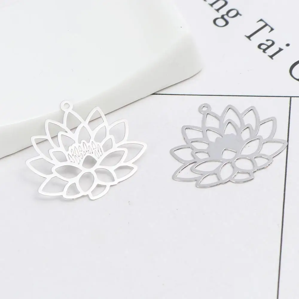 DoreenBeads модные медные Подвески, серебристый лист, в полоску, цветок лотоса, Филигранное тиснение, ювелирное изделие, сделай сам, 20 шт.