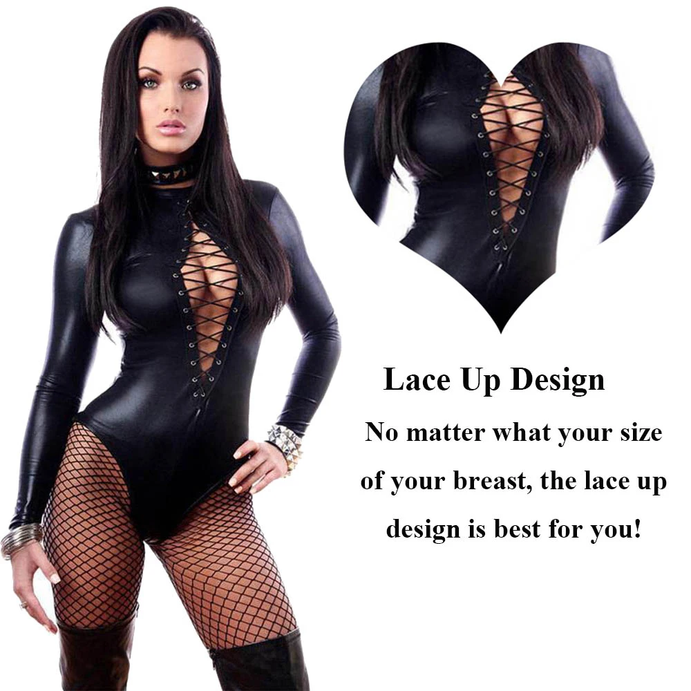 Product NameLeather Bodysuit Long Sleeve Lace-up Club Jumpsuit