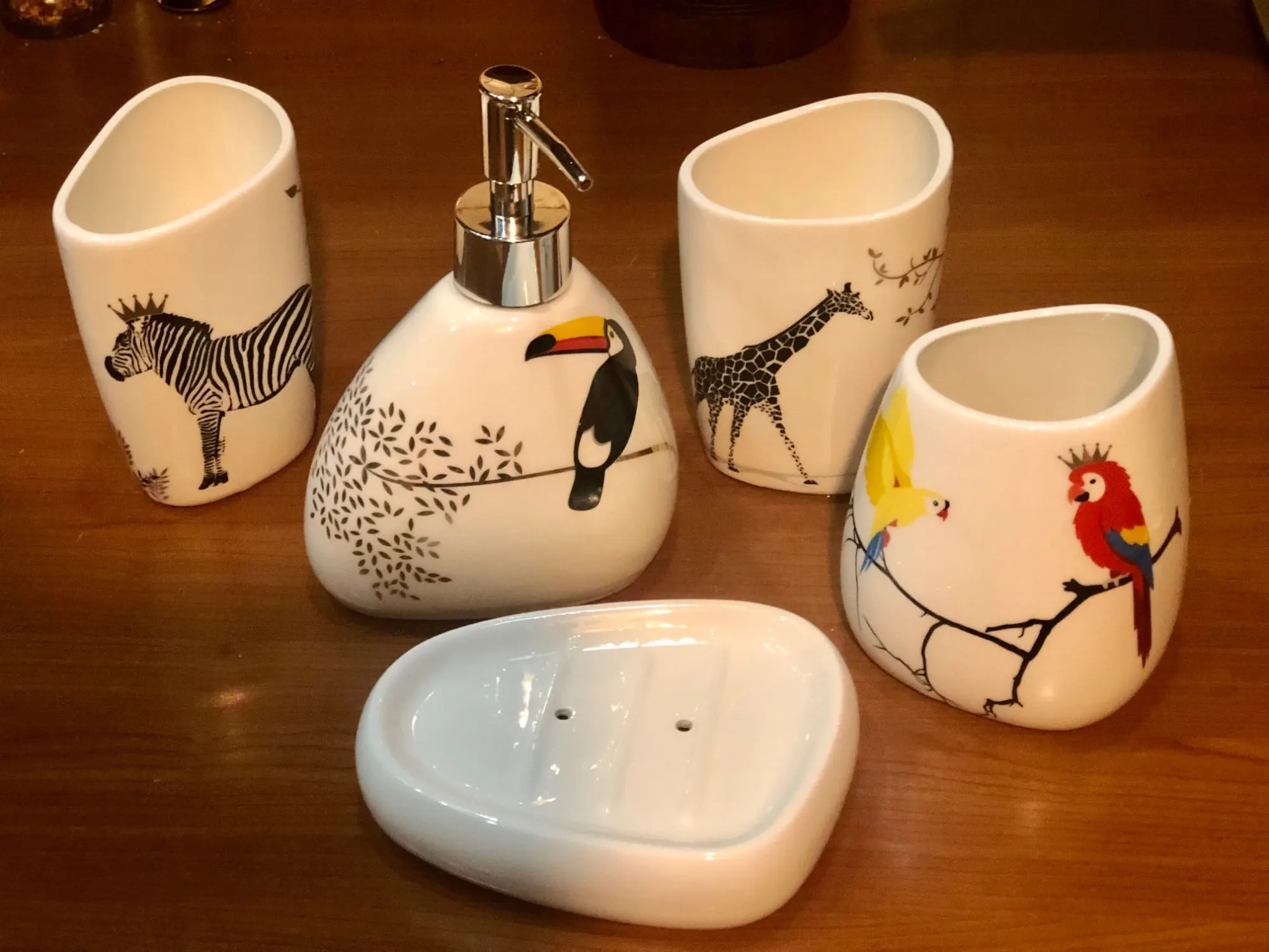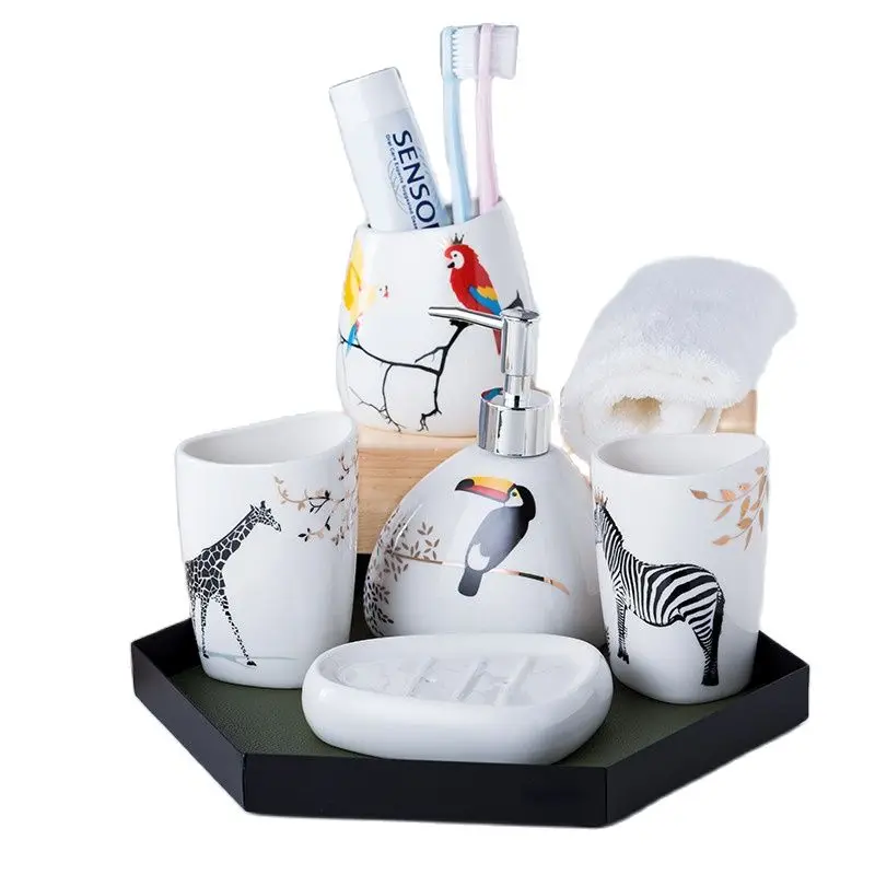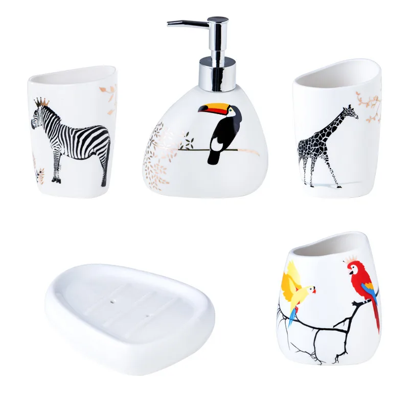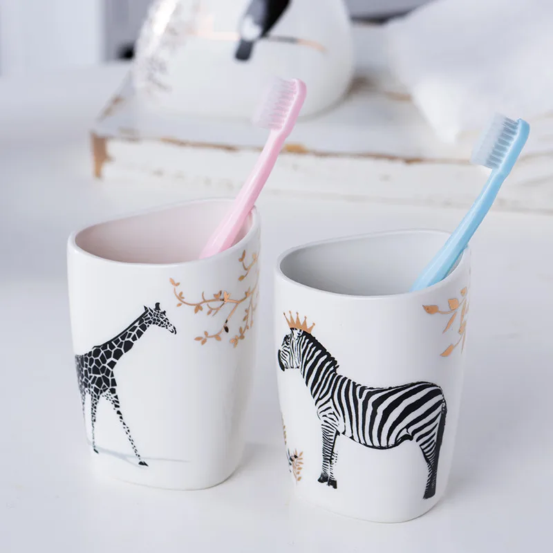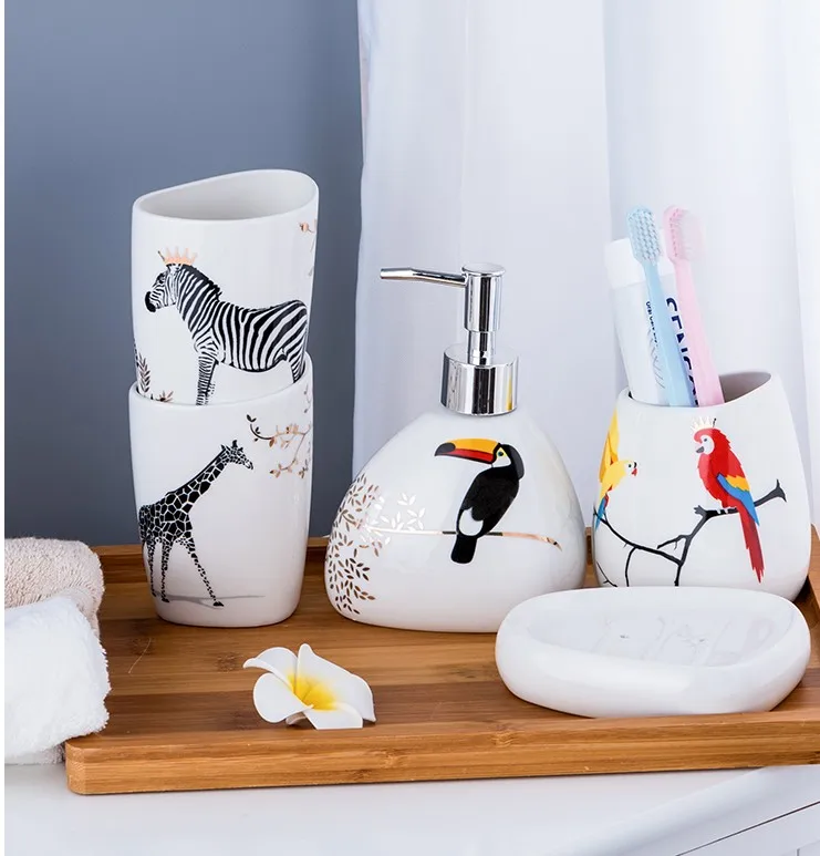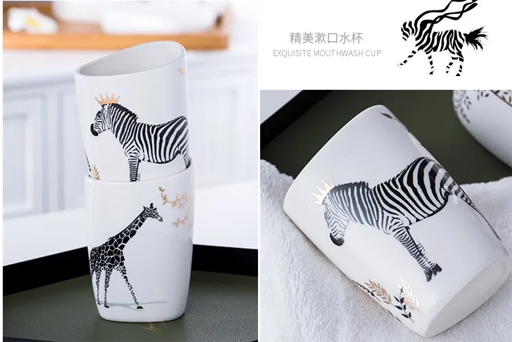 Набор из 5 предметов для детских принадлежностей для ванной комнаты с изображением зебры, совы, керамические чашки для мытья