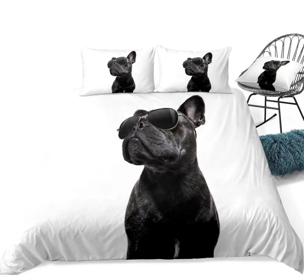 Набор пододеяльников с 3d-рисунком черной собаки, бульдог с солнцезащитными очками, домашний текстиль, белое покрывало с животными, для подростков, домашних животных, королева, 3 шт., Прямая поставка