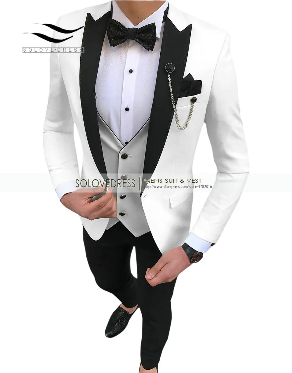 Мужские деловые костюмы из 3 предметов, Белые Повседневные смокинги...