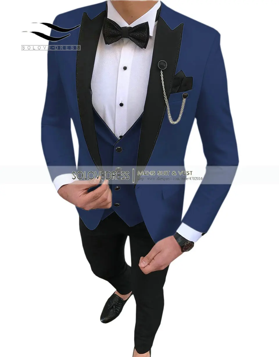 Новинка 2021, темно-синие смокинги для жениха, черный свадебный кос...