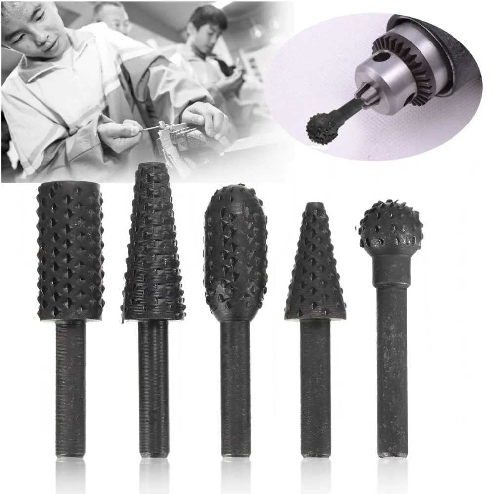 5 шт.компл. быстрорежущий стальной ротационный файл древесины сверление, Выпиливание инструмент артефакта роторный Рашпиль 14 "для конических фрез-вольфрамовый бор Файл Рашпиль биты для сверла для деревообработки