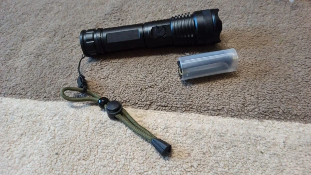 Фонарь хорошего качества, аккумуляторы пришли заряженными , находились внутри фонаря с пломбами от разряда на минусовых клеммах .Плюс бонусом положили втулки - переходники на аккумуляторы меньшего размера и дополнительный шнур для переноски на плече , так же есть короткий шнур на кисть