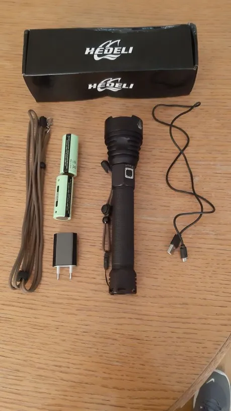 Фонарь просто супер, свет сверхьяркий с огромным захватом, качество супер, вес фонаря весомый, линза при свете греется, в комплекте зарядное родное не очень, подходит от телефона которое помощнее, заказ ждал примерно 1,5 месяца до Краснодарского края, Ейск, но все дошло в целости и сохранности, заказывайте, не пожалеете, фонарь стоит своих денег !!!