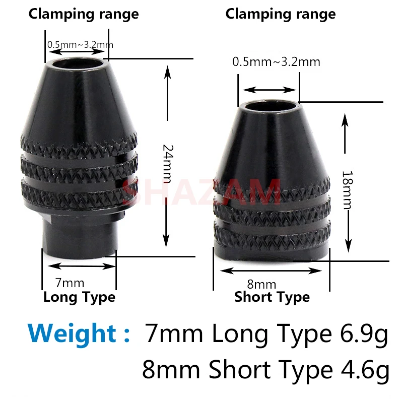 Многофункциональный трехкулачковый сверлильный патрон M7/M8, Универсальный мини-сверлильный аксессуар SHAZAM, цанга, вращающиеся инструменты 0,5-3,2 мм для дрели Dremel