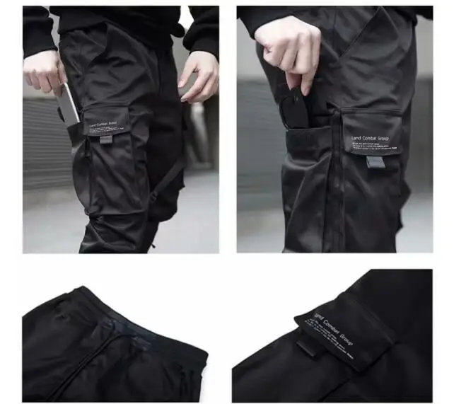 Брюки-карго мужские, с лентами и несколькими карманами, черные, 2020Hot, шаровары, спортивные штаны в стиле Харадзюку, хип-хоп