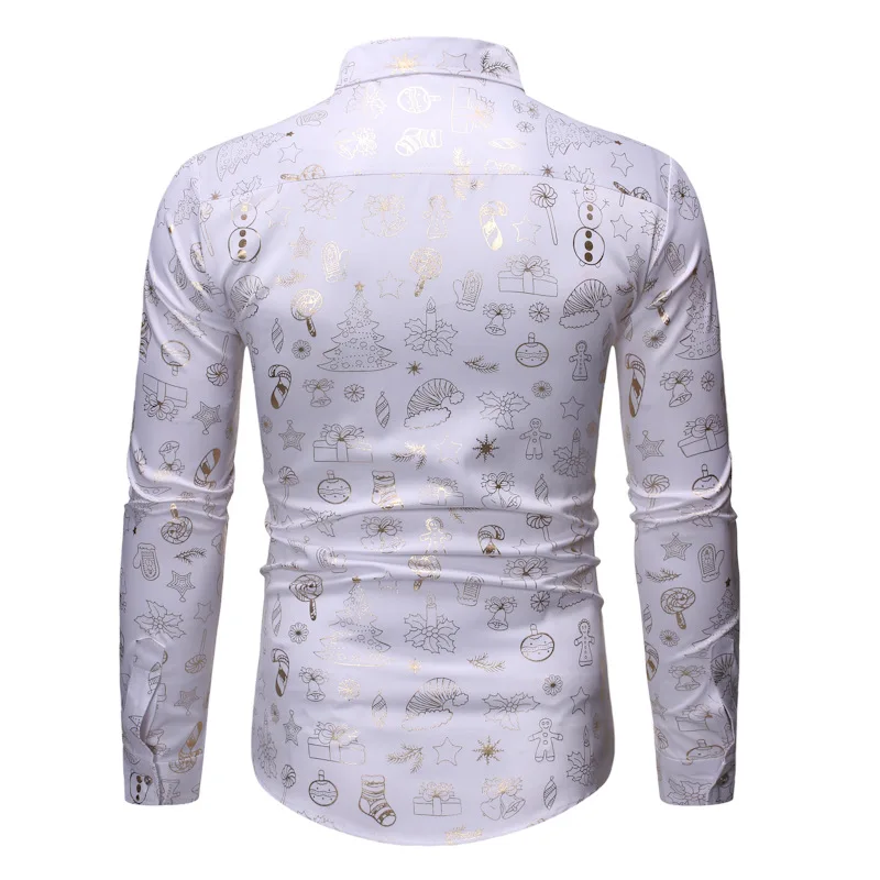 Мужская Повседневная рубашка на пуговицах, Сияющая Черная рубашка с длинным рукавом и цветочным принтом, деловой Повседневный Топ на Рождество, 2022