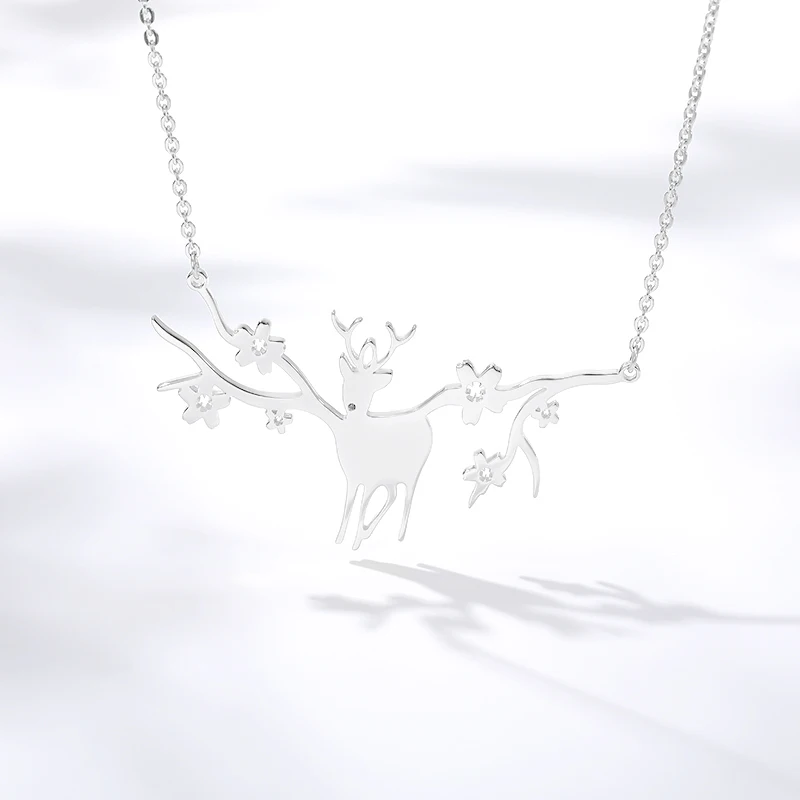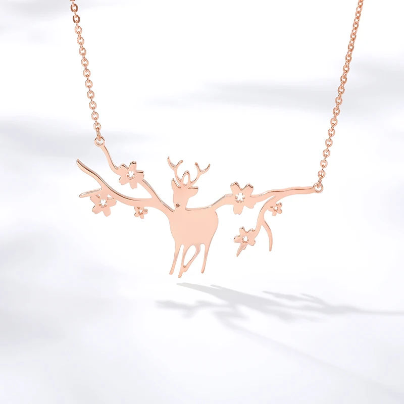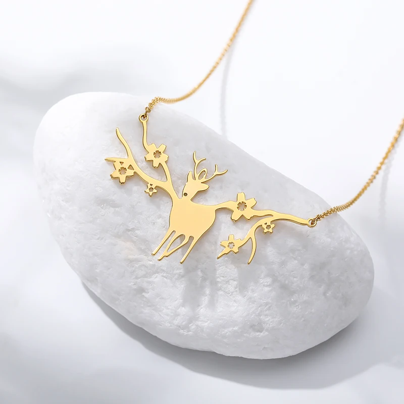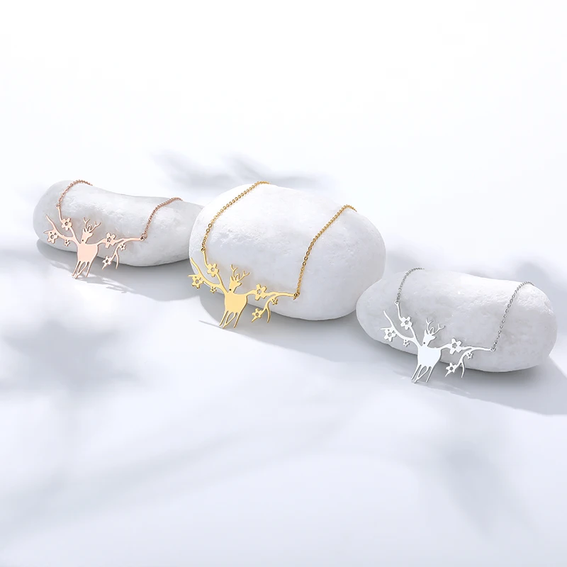 Ожерелье с подвеской в виде оленя и цветка, из нержавеющей стали