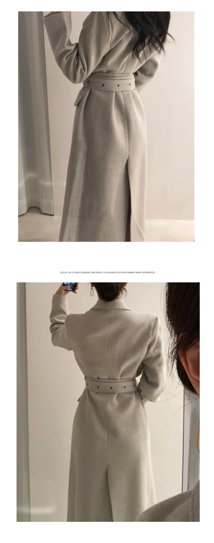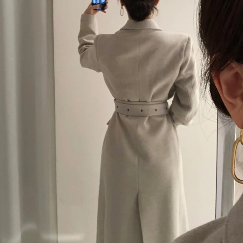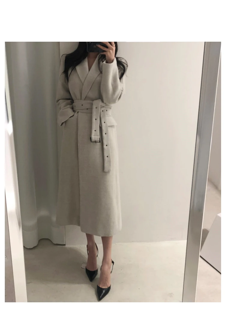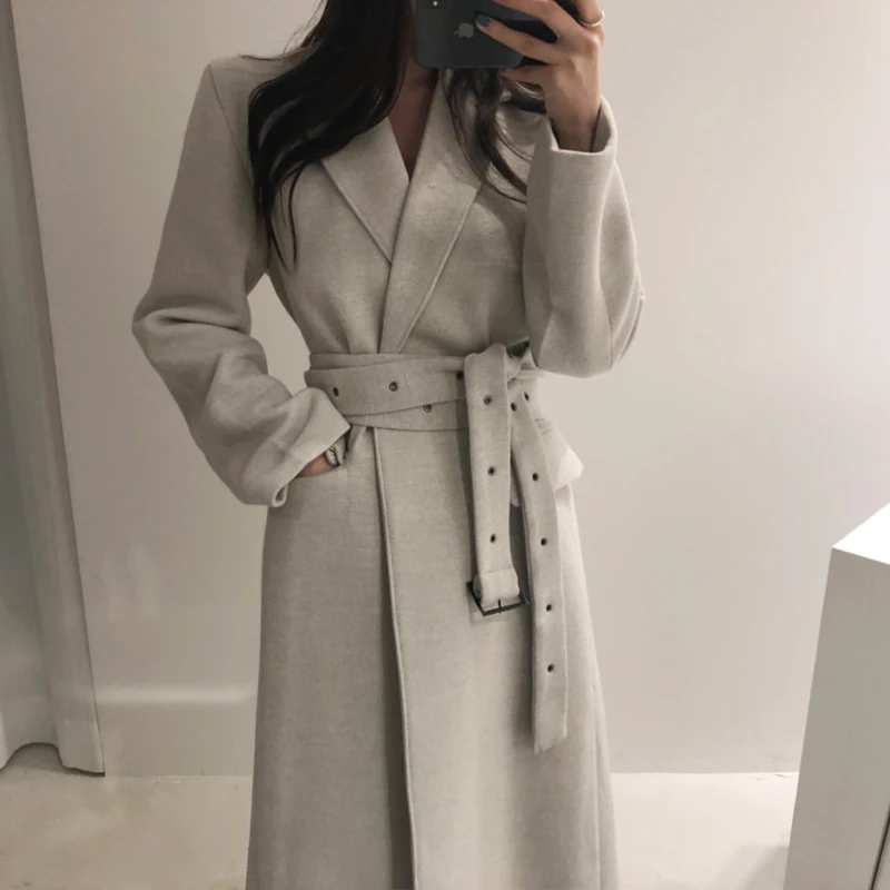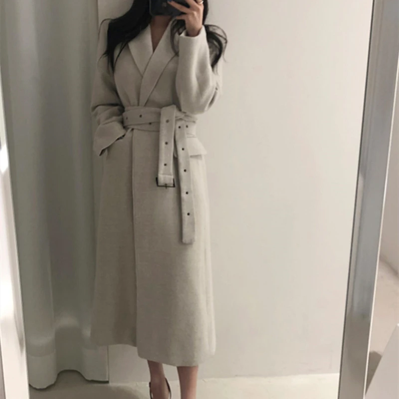 Высокое качество, утолщенные женские пальто, зимнее шерстяное пальто с длинным поясом, Офисная Женская модная верхняя одежда на шнуровке