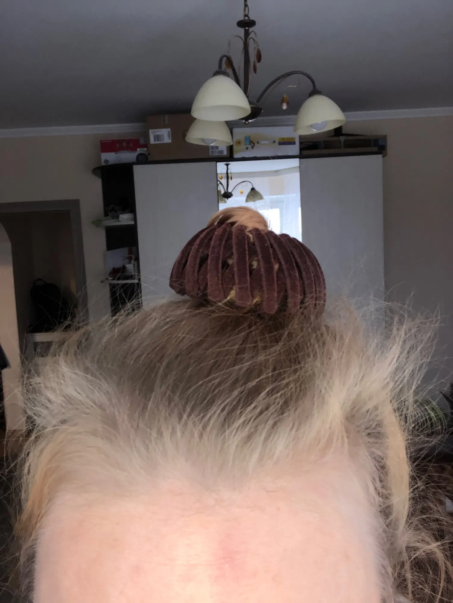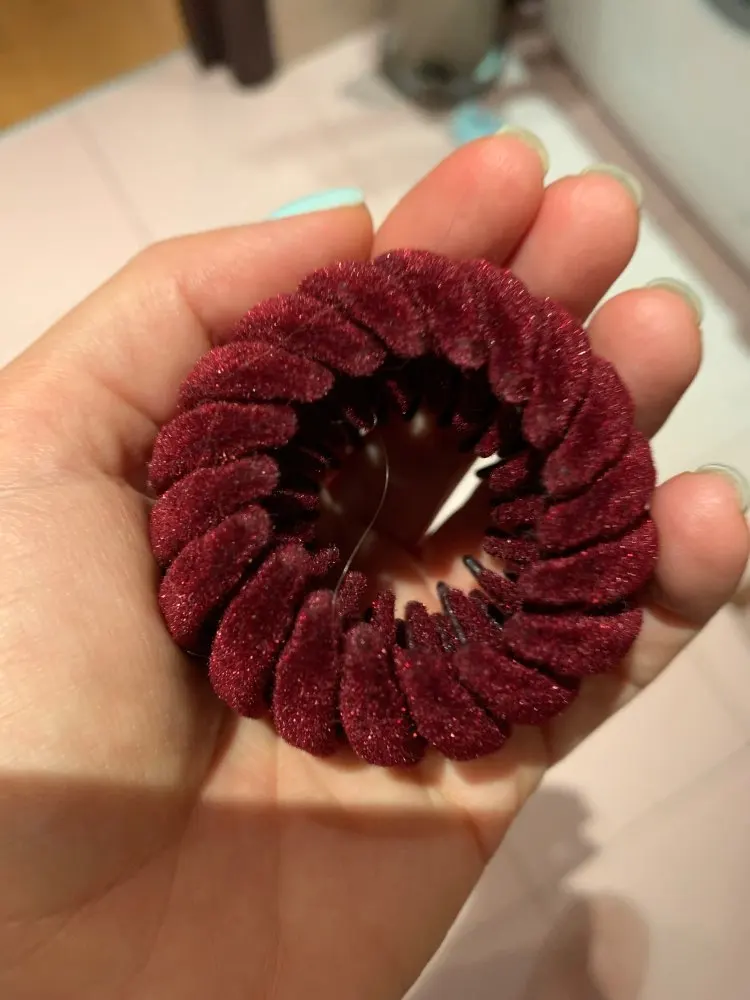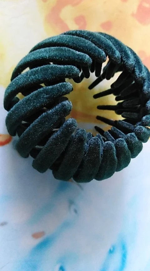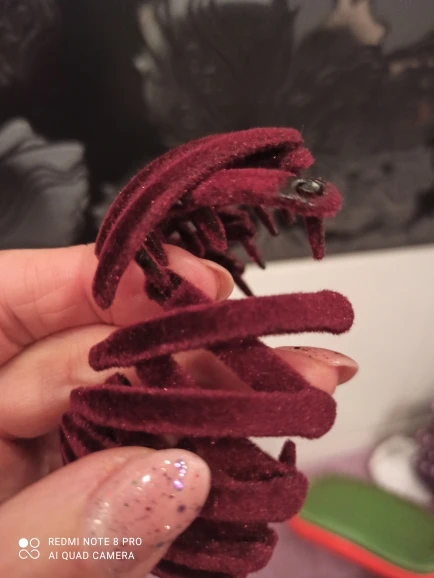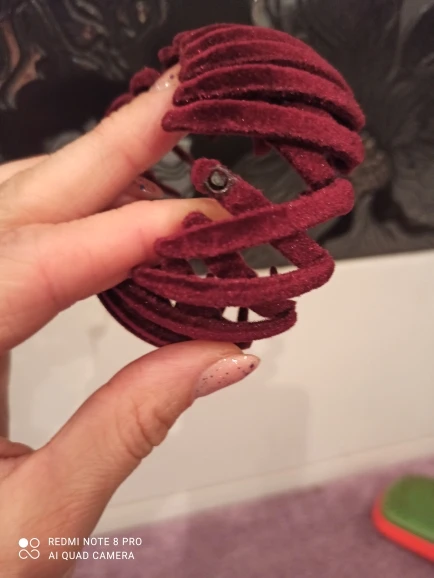 Заколка полностью соответствует описанию, бархатная, выглядит не дёшево. Волосы держит очень хорошо, как пучок, так и хвост. Правда от частого пользования со временем выпадают звенья, поэтому заказала ещё одну. 1-2 можно убрать, на качество не влияет. Рекомендую