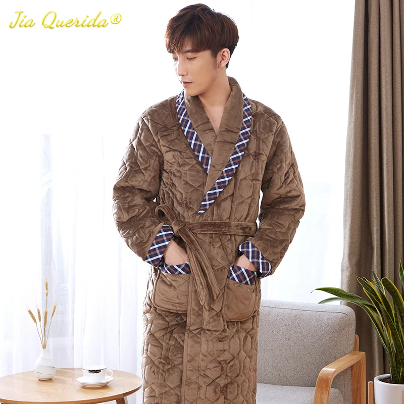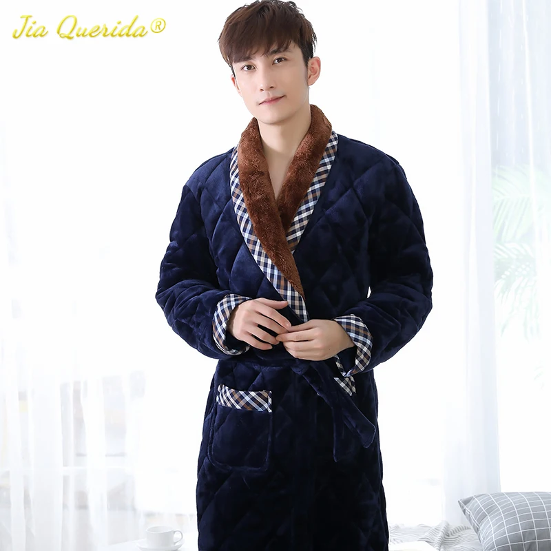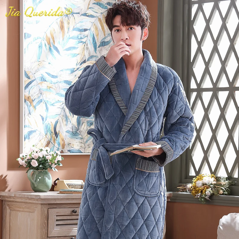Ночная рубашка мужская, бархатная, 3 слоя, с подкладкой, длинными рукавами, тиснением, зимнее кимоно
