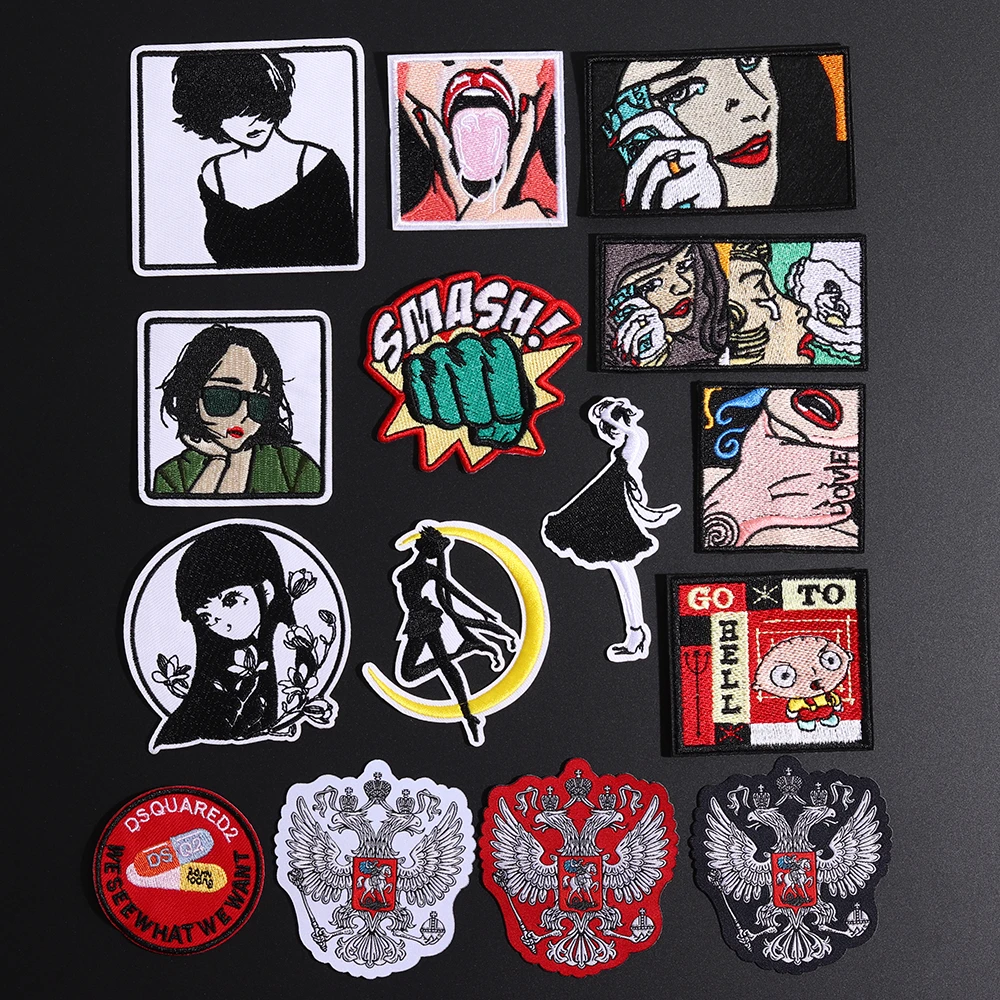 Нашивки в стиле японского аниме для девочек, аппликации в стиле панк для девушек с волнистым закатом, 3D аппликации в виде кулака с российским флагом, аксессуары для одежды сделай сам