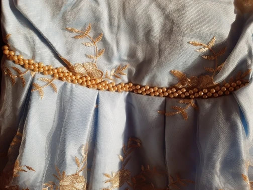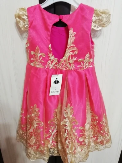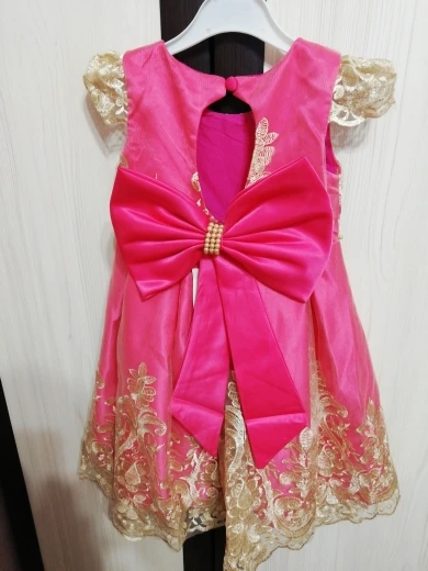 Даже не знаю как и описать... Начну с хорошего- доставка 3 недели платье очень понравилось, ткань отличная! Но качество пошива храмает, нитки висят, где можно обрезать это ерунда, а вот в одном месте распущено кружево и сзади одна сторана заметно выше другой ! Этого без ателье не убрать! Может это мне так повезло... Смотрите сами. Да, нам 3 года 104 см. Размер взяли 120 и нам в притык!