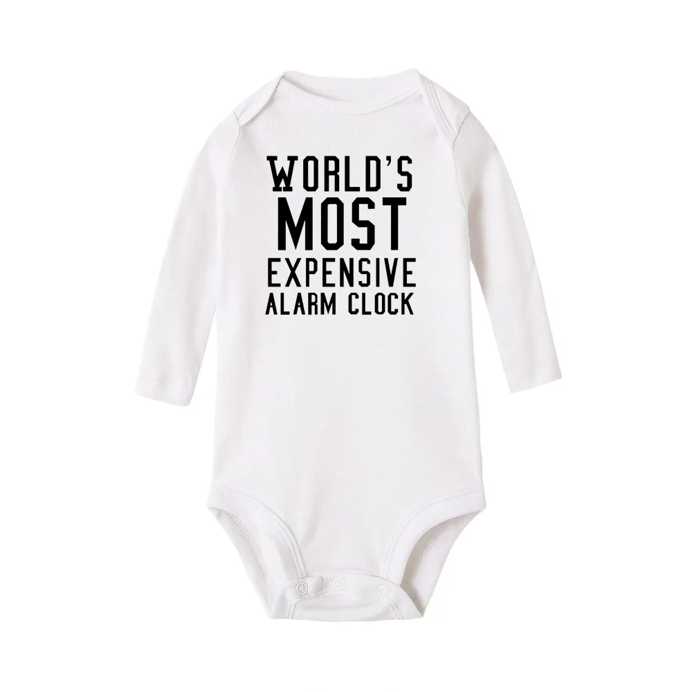 Комбинезон Rompres для мальчиков и девочек, Осенний комбинезон с длинным рукавом, с забавным принтом и будильником, самый дорогой в мире