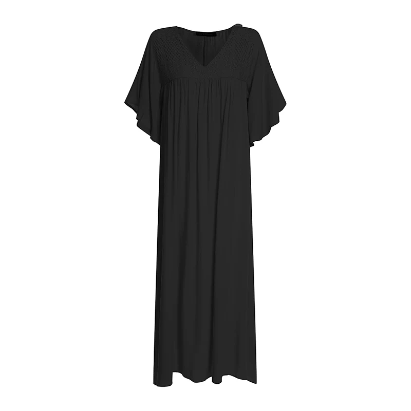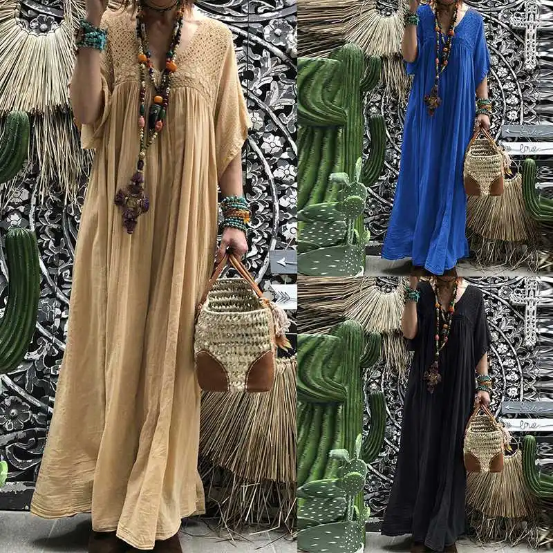 ZANZEA 2022, богемное кружевное вязаное крючком Макси-Платье, женский летний сарафан, плиссированные платья с рукавом до локтя и V-образным вырезом
