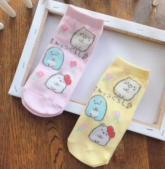 1 пара, милые японский Sumikko Gurashi углу существо, хлопковые короткие носки для девушек-студенток; Носки с мультяшным рисунком; Плюшевая обувь в форме животных игрушки подарок