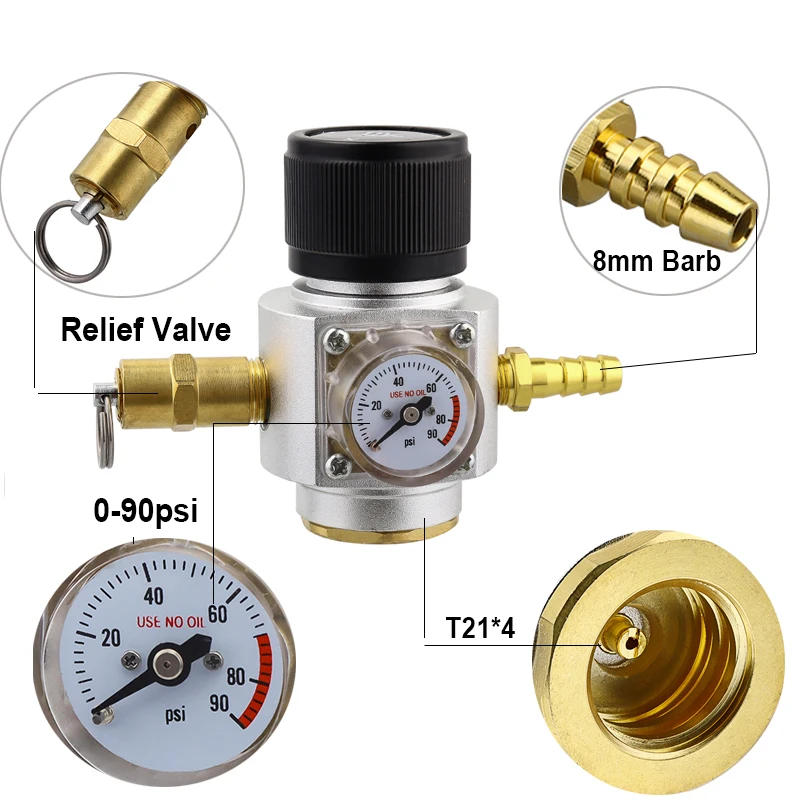 516 "Газовая линия в сборе-0-90 PSI содовая бутылка CO2 мини газовый регулятор T21 * 4-дозирование пива Cornelius Corny Keg Ball Lock
