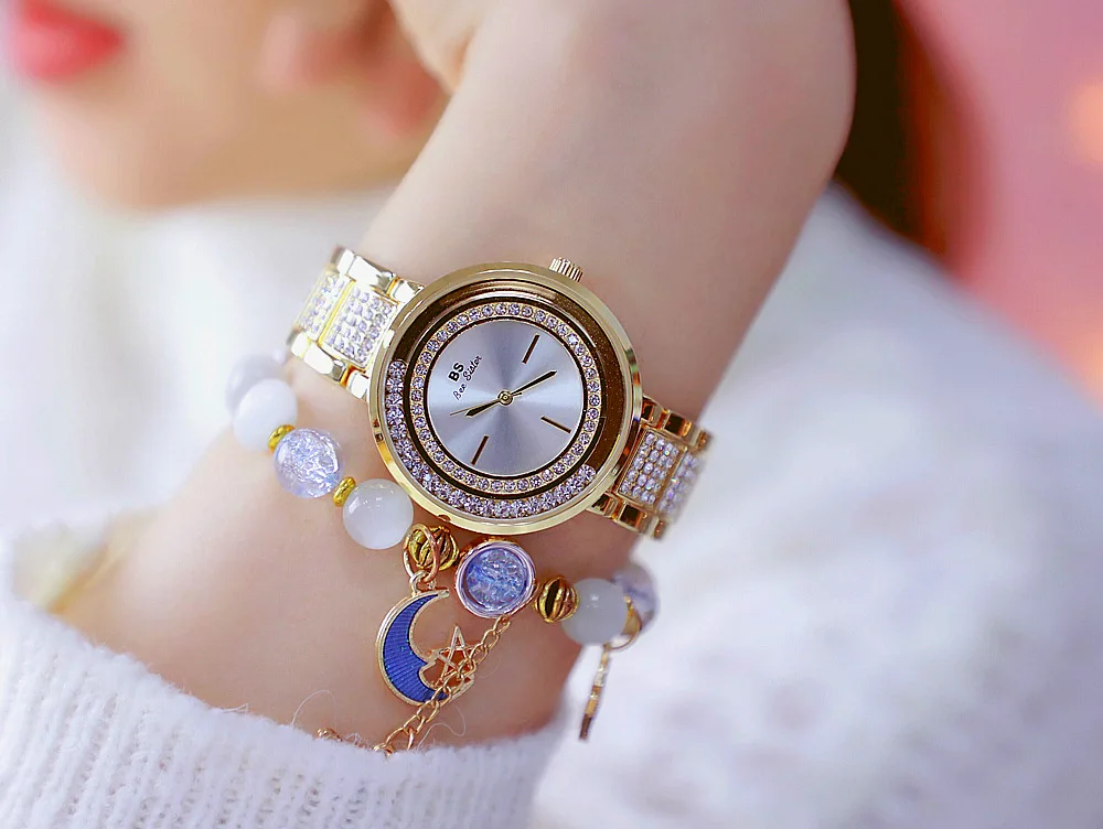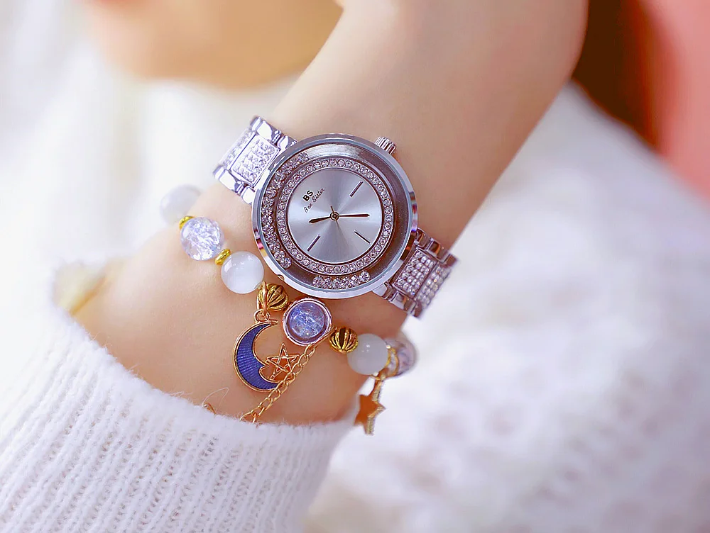 2019 женские часы с бриллиантовым браслетом Женские повседневные кварцевые наручные часы из нержавеющей стали Relogio Feminino