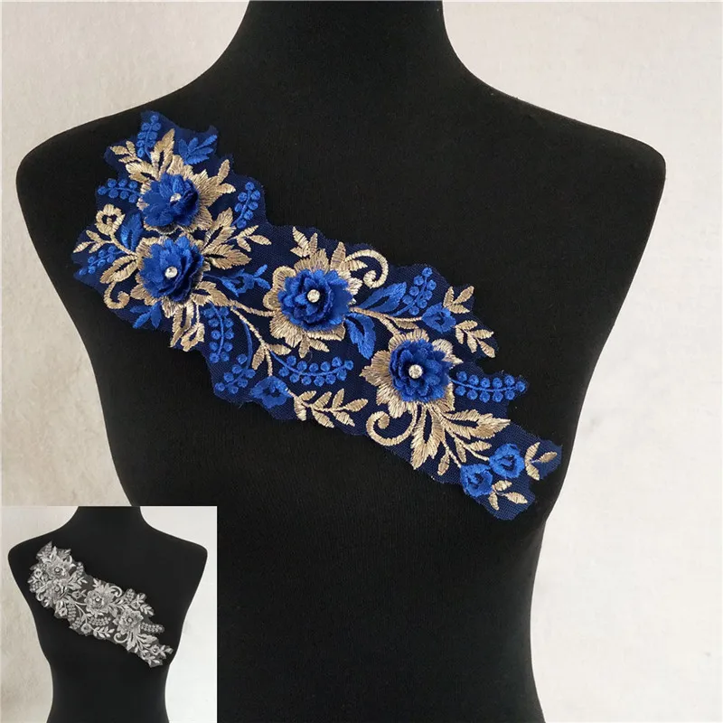 Синий 3D кружевной цветок аксессуары для шитья DIY материал для изг...