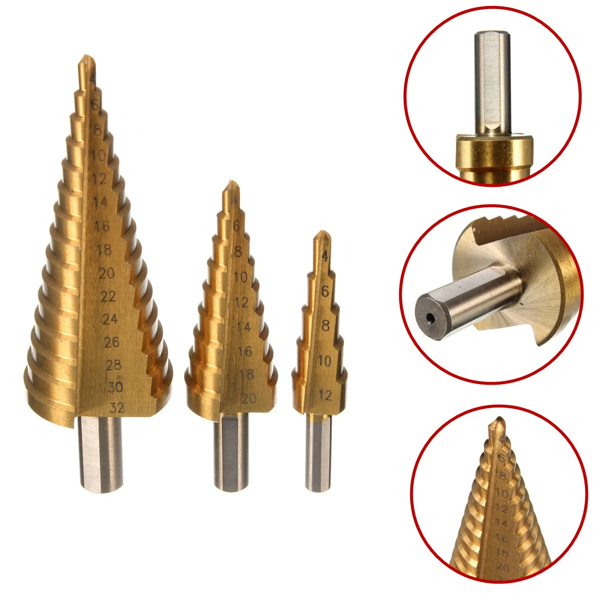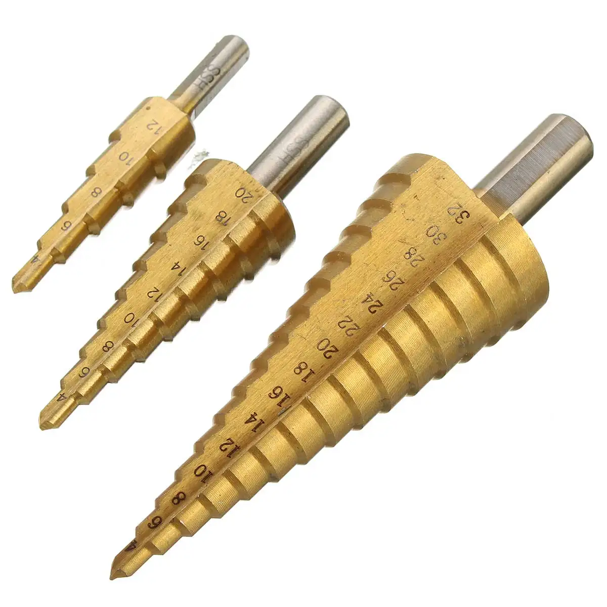 Набор ступенчатых конусных сверл, 4-122032 мм из быстрорежущей стали с титановым покрытием, конусное метрическое Коническое сверло, аксессуары для мини-дрели