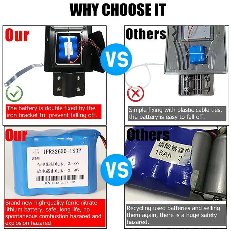 Особенности: -140 / 210/ 280 светодиодных ламп высокой яркости 2835, энергосберегающие, равномерсветильник долговечные. -Поликристаллическая солнечная панель преобразует солнечную энергию в электричество, более экологически чистая. -Технология измерения человеческого тела делает его более энергоэффективным, включается при обнаружении движения, тусклсветильник при отсутствии движения. -Солнечные панели преобразуют солнечную энергию в электричество, более экологически чистые. -Корпус из АБС-пластика 1 шт., высокая твердость, герметичность и водонепроницаемость -Простая установка, безуходная надежная работа без необходимости подключения проводки или траншеи. Нержавеющий, водонепроницаемый алюминиевый сверхпрочный корпус. -Пожалуйста, включите переключатель перед установкой или зарядкой. -Применение: наружная стена или шест на площади, парке, саду, дворе, улице, дорожке, тропинке, кампусе, ферме, безопасности по периметру и т. д. Характеристики: Материал корпуса: абс + ПК Источник светильник: 2835 светодиодных лампочек высокой яркости (ярче, устойчивее к температурам) Цветовая температура: 7800K (холодный белый) Уровень водонепроницаемости: 95% герметичная Водонепроницаемость (дождь) Система управления: кнопочное управление светильник том + таймер + пульт дистанционного управления Угол срабатывания: 120 градусов Эффективный диапазон: 5 - 8 метров Степень водонепроницаемости: IP67 Источник питания: Встроенный литий-железо-фосфатный аккумулятор Цвет: серый/черный Товар: Мощность: 300 Вт Световой поток: лм Кол-во светодиодов: 140*2835 светодиодов Солнечная панель: поликристаллическая солнечная панель 6 в/7 Вт Емкость аккумулятора: литий-железо-фосфатный аккумулятор 3,2 В/5 Ач Тип батареи пульта дистанционного управления: 2 батарейки AAA (не входят в комплект) Режим: кнопочное управление + управление освещением + таймер + пульт дистанционного управления Светильник: белый Цвет корпуса: черный Материал: АБС Площадь облучения: 80 квадратных метров Время полной зарядки: 9-10 часов Время разряда: 12-13 ч Мощность: 600 Вт Световой поток: 600 лм Кол-во светодиодов: 210*2835 светодиодов Солнечная панель: поликристаллическая солнечная панель 6 в/9 Вт Емкость аккумулятора: литий-железо-фосфатный аккумулятор 3,2 В/10 Ач Тип батареи пульта дистанционного управления: 2 батарейки AAA (не входят в комплект) Режим: кнопочное управление + управление освещением + таймер + пульт дистанционного управления Светильник: белый Цвет корпуса: черный Материал: АБС Площадь облучения: 100 квадратных метров Время полной зарядки: 9-10 часов Время разряда: 12-13 ч Мощность: 900 Вт Световой поток: 900 лм Кол-во светодиодов: 280*2835 светодиодов Солнечная панель: поликристаллическая солнечная панель 6 в/12 Вт Емкость аккумулятора: литий-железо-фосфатный аккумулятор 3,2 В/15 Ач Тип батареи пульта дистанционного управления: 2 батарейки AAA (не входят в комплект) Режим: кнопочное управление + управление освещением + таймер + пульт дистанционного управления Светильник: белый Цвет корпуса: черный Материал: АБС Площадь облучения: 150 квадратных метров Время полной зарядки: 9-10 часов Время разряда: 12-13 ч Посылка входит(По вашему выбору): ① Только 1 солнечный уличный фонарь Или② 1 солнечный уличный фонарь + 1 пульт дистанционного управления