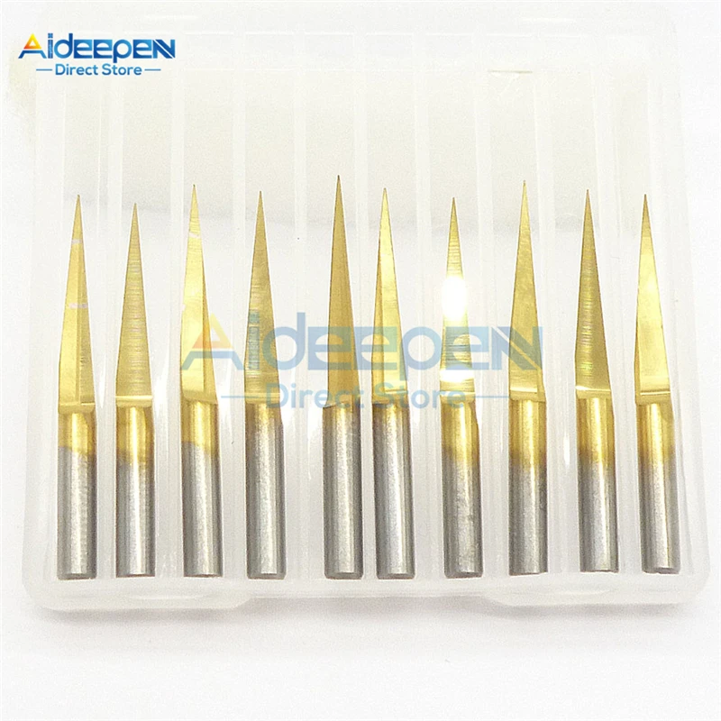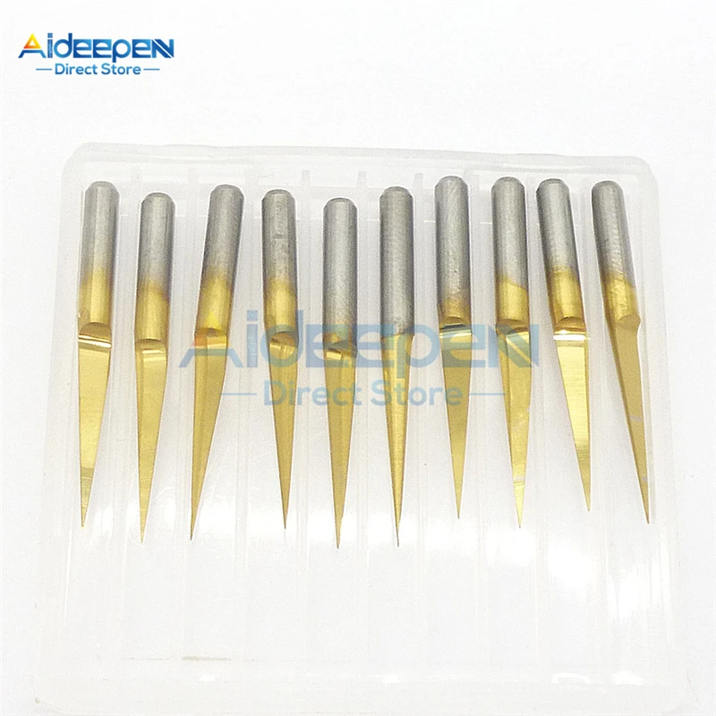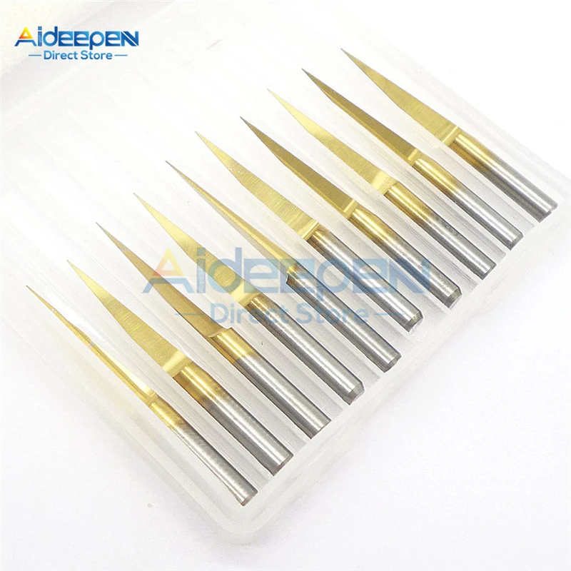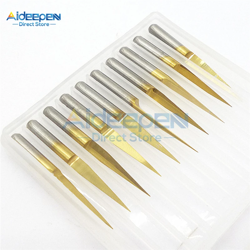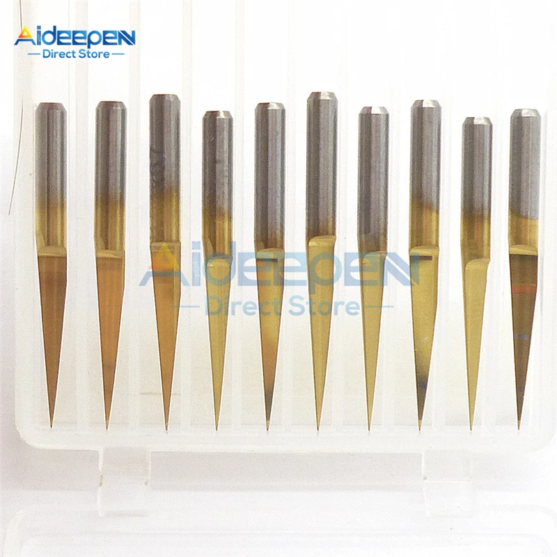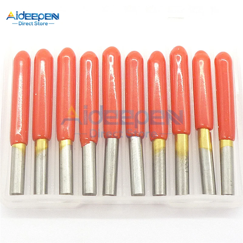 10 шт.лот 3,175 мм твердосплавные гравировальные фрезы для печатных плат, прямая V гравировальная дрель с ЧПУ, инструмент для фрезерного станка 10 градусов 0,1 мм