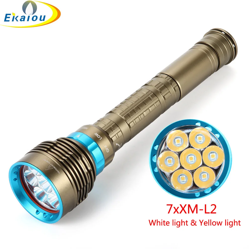 Новинка IP8 водонепроницаемый фонасветильник для дайвинга 7 X XM-L T6 L2 светодиодный тактический белыйжелтый светильник подводный поймать рыбу Охота фонарь