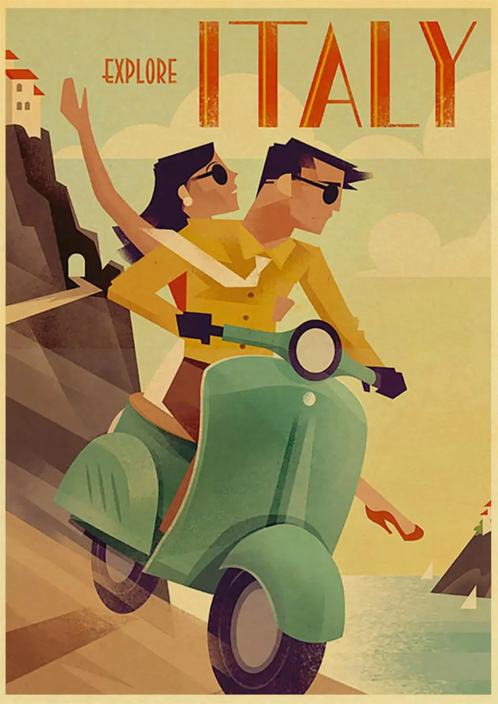 Известных мировых проездных Италия Таиланд Лондон ретро постер винт...