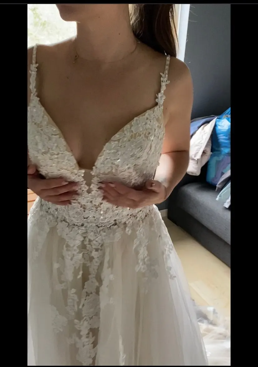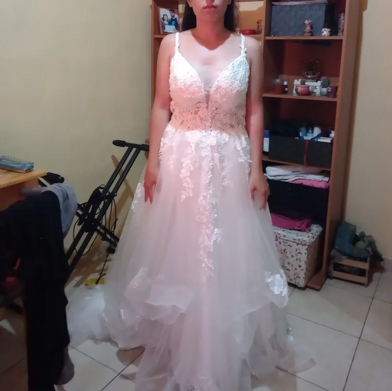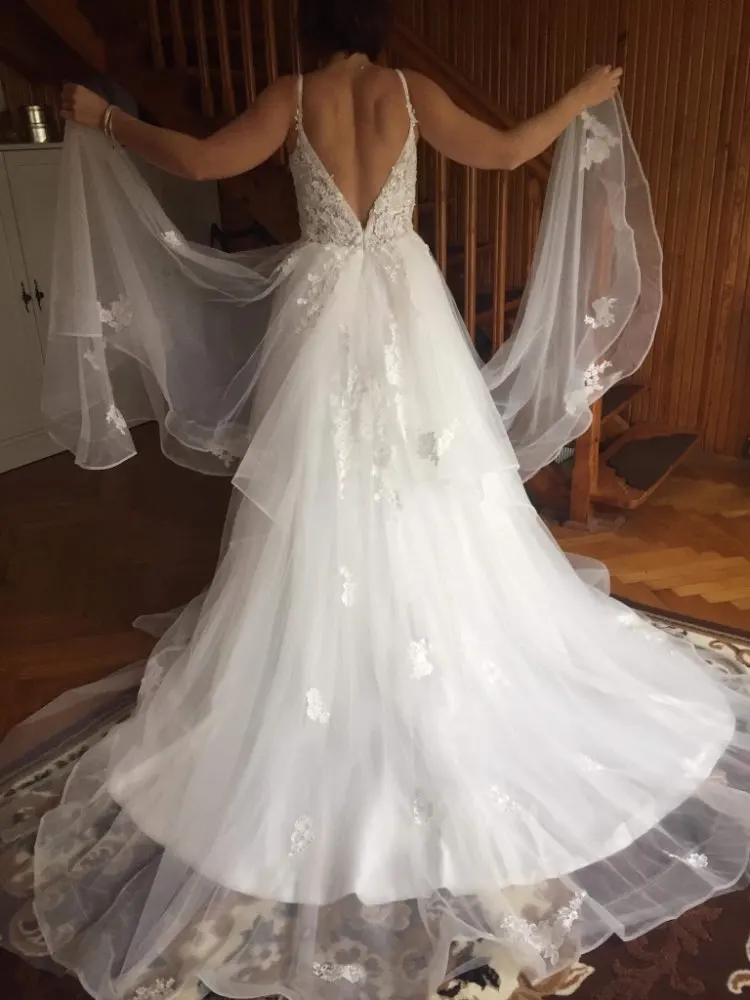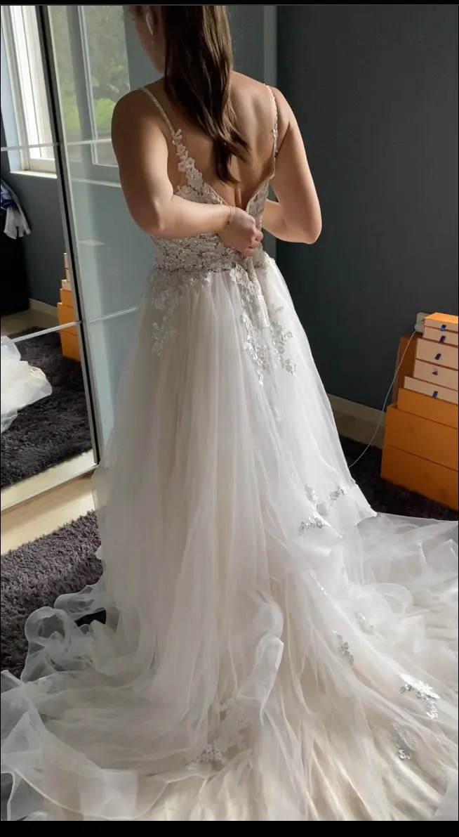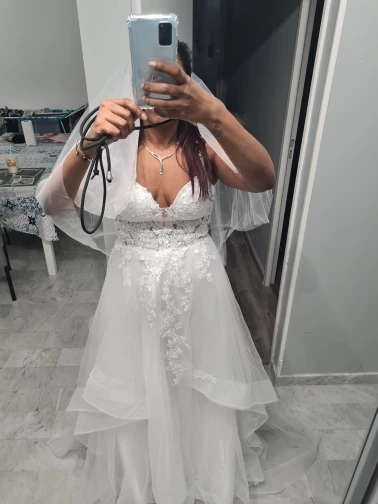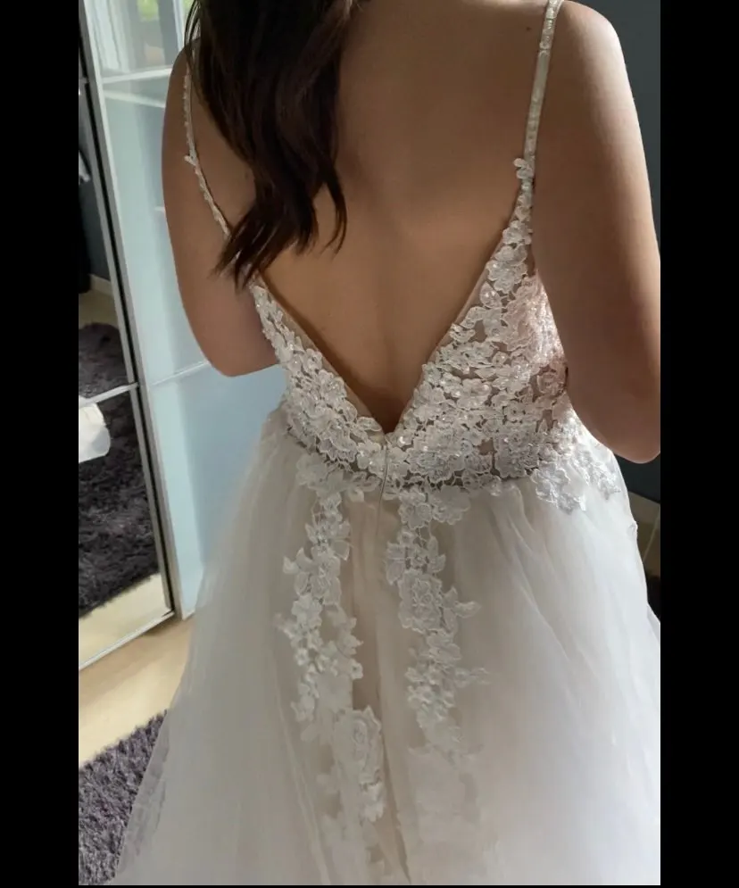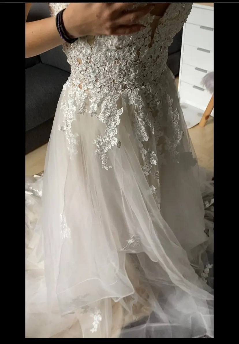 Платье не выглядит как на картинке, оно гораздо лучше! Очень высококачественная ткань и работа. Ни одна нить не торчит. Я также очень ценю общение с продавцом. Размер 2 был немного больше для меня в соответствии с таблицей размеров, поэтому у меня было немного сшито и скорректировано платье (5 слоев тюля, цвета, 1 м длинный поезд). Мне также не нужен бюстгальтер. Продавец на 100% сделал все согласно моим идеям. Я сделал заказ 5 января и 24 января получил его! Большое вам спасибо, я рекомендую!