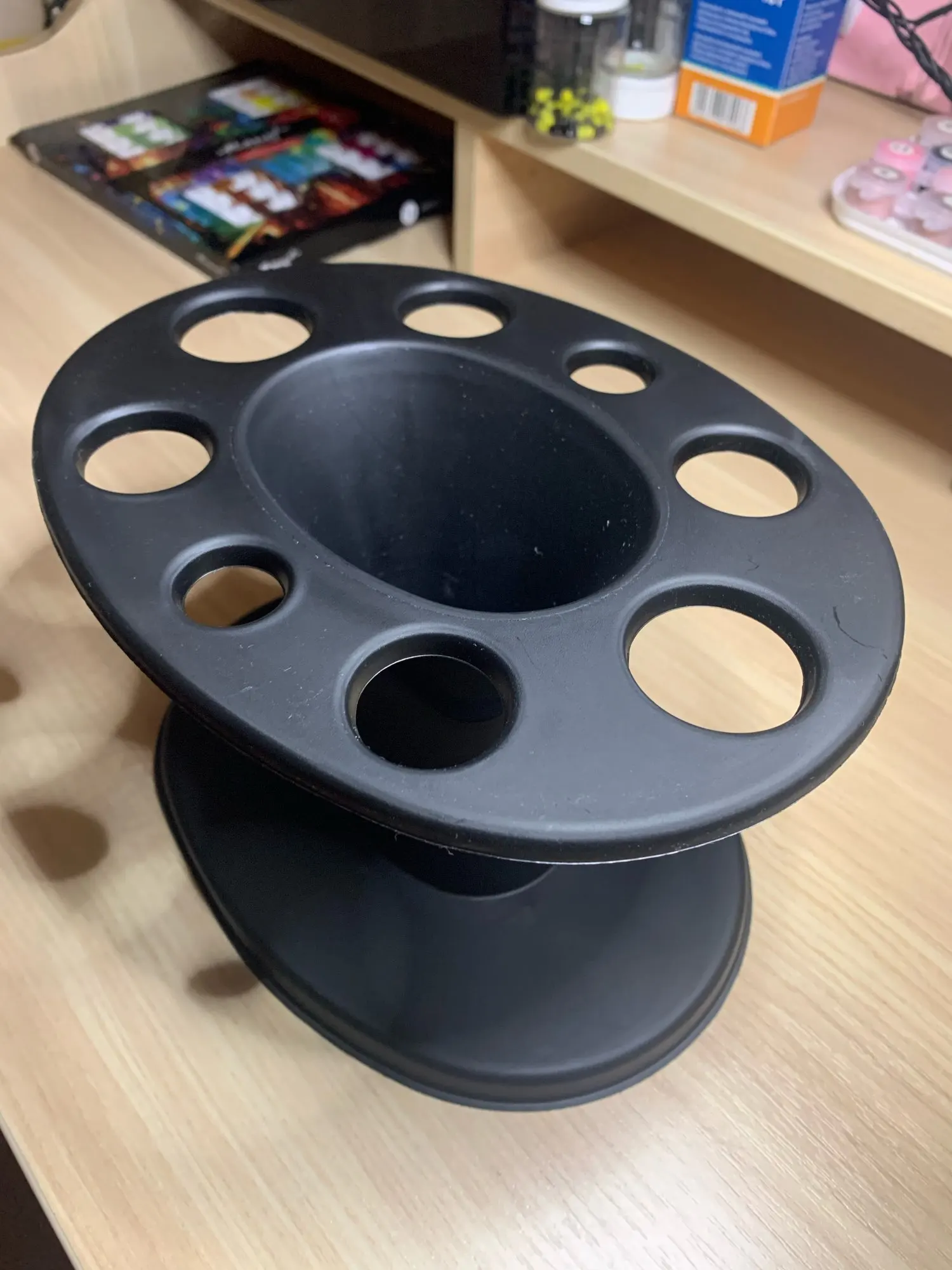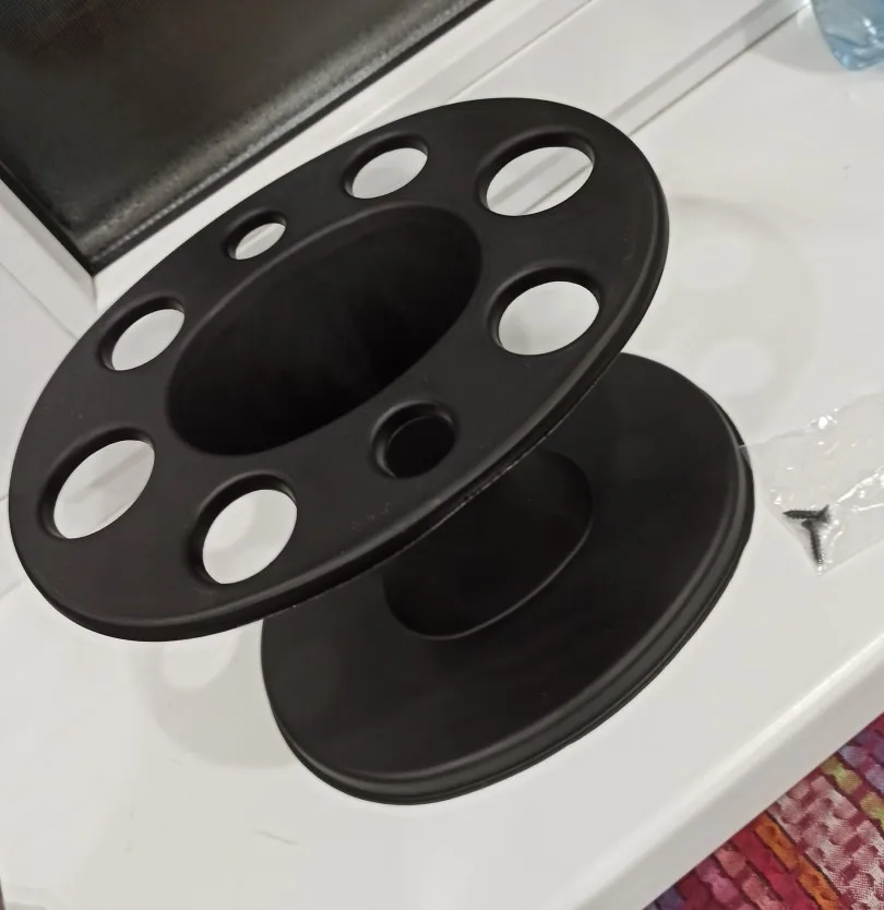 Хороший органайзер но занимает слишком много места на тумбе, где стоит, но что делать - уже купили. Будем пользоваться. Дырки разных диаметров (доя разных щёток)