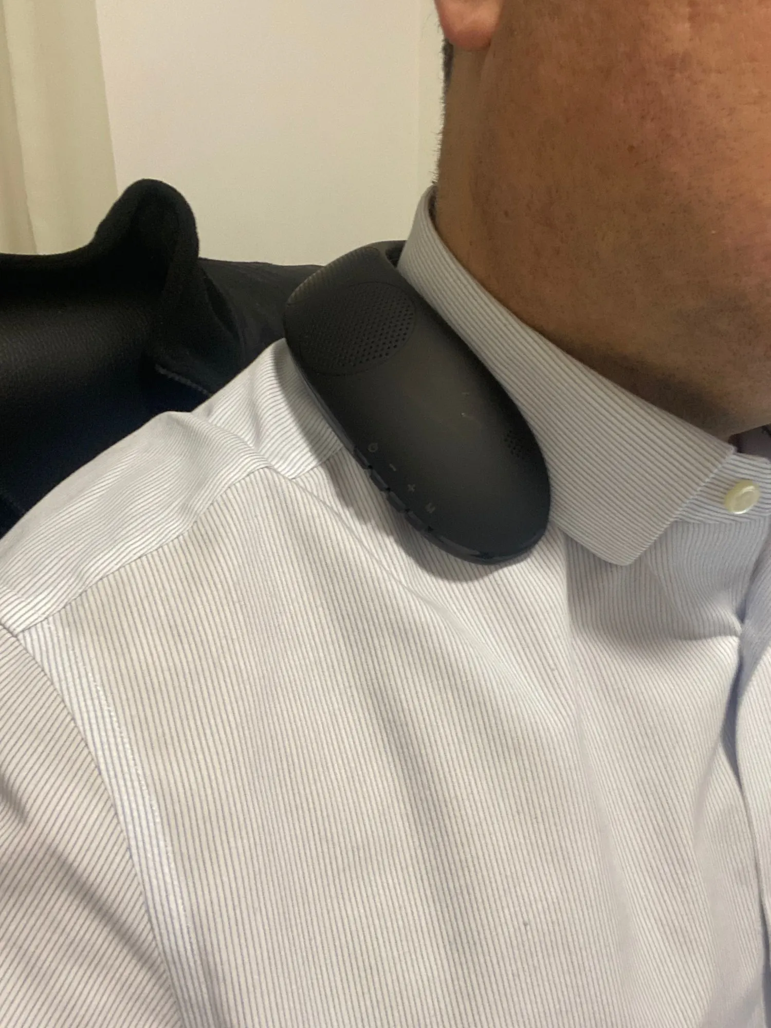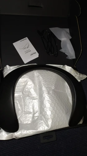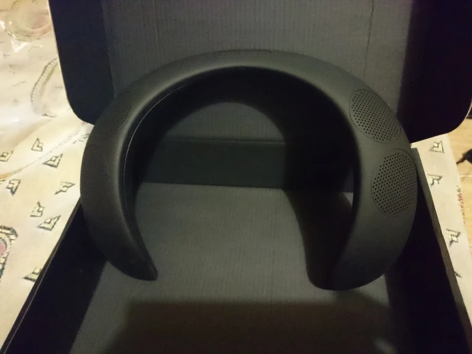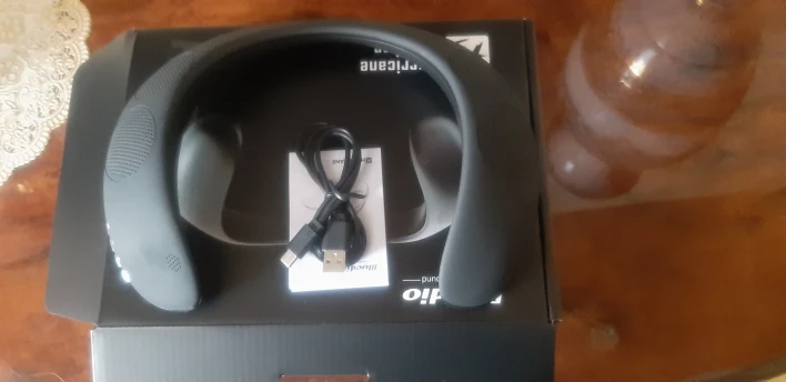 Быстрая доставка, товар взял просто из интереса попробовать, вдруг бабуле вместо наушников подойдёт, но наушников точно не заменит, ибо это прям реально как саунд бар на плечах (громкий), в целом товар прекрасен собой, хорошо упакован, приятно раскрывать/доставать и материал самого устройства тоже приятен, сложно назвать одноразовой игрушкой, в общем рекомендую если например кому-то смотрите в подарок, штука интересная, неординарная и может использоваться у многих в ходу