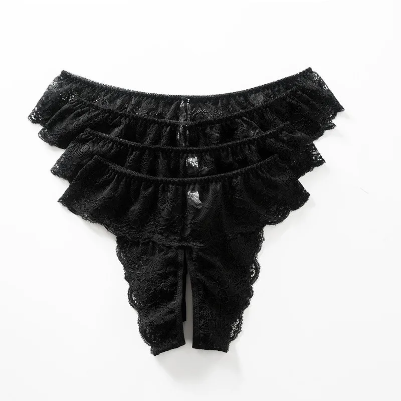 Трусы женские кружевные с открытой промежностью, XL, XXL, XXXL, 4XL, размера плюс, прозрачные трусики
