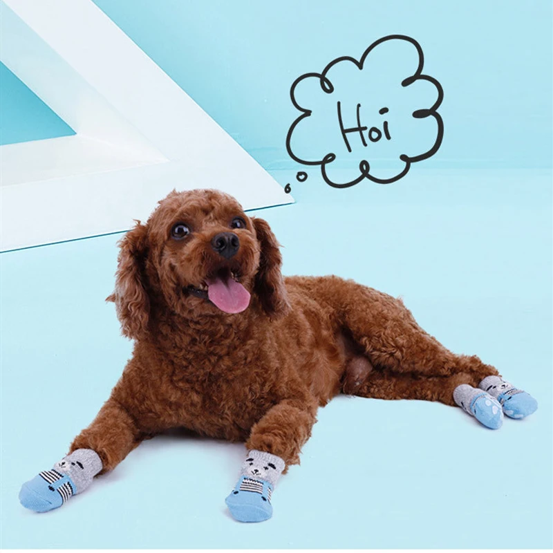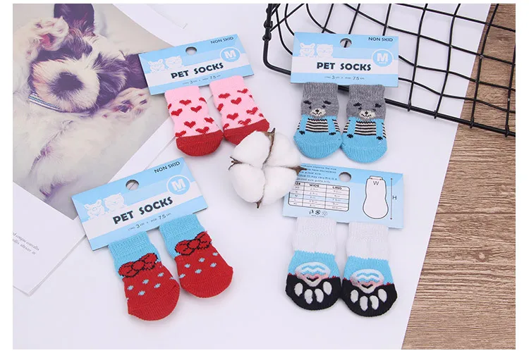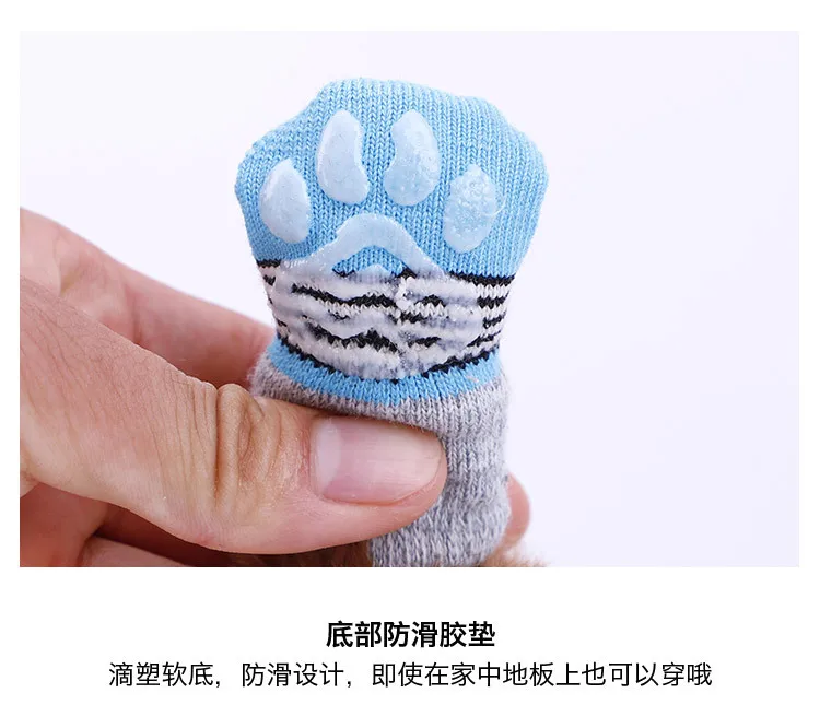 Нескользящие носки для собак, вязаные носки, зимние носки для маленьких кошек и собак, толстые теплые носки с защитой лап для чихуахуа, пинетки, аксессуары