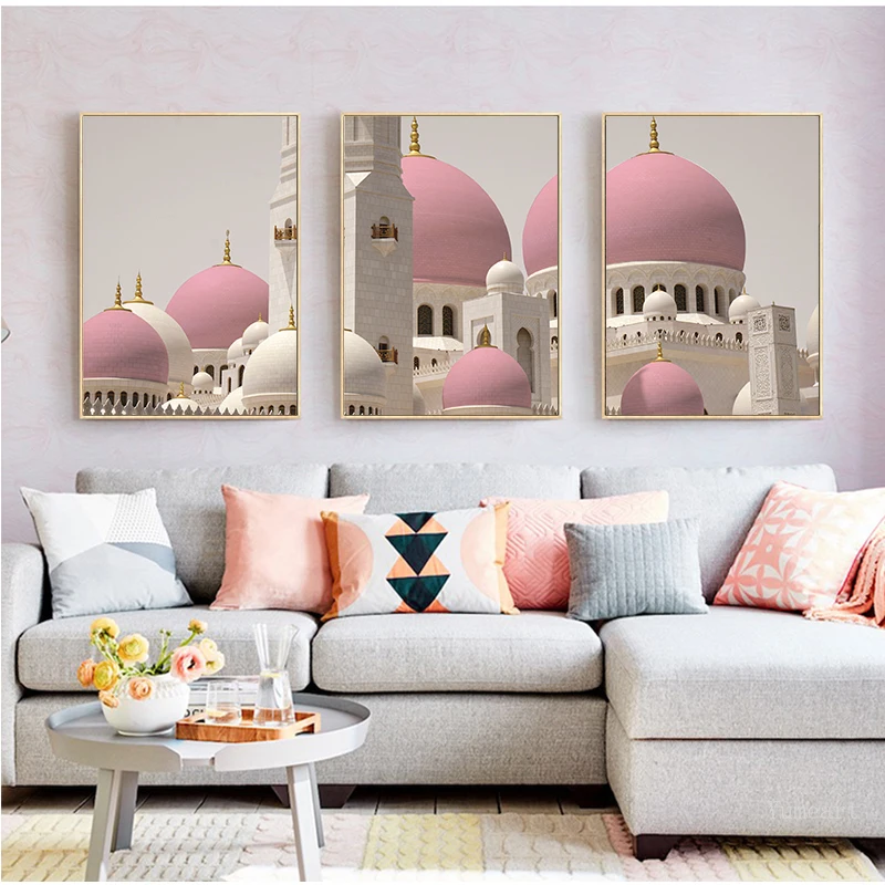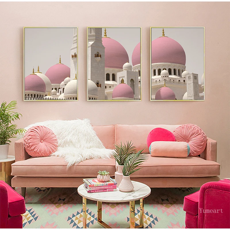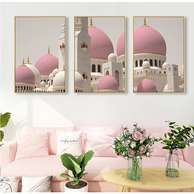Скандинавский розовый мечети минималистское полотно стены здания картинки для современных Гостиная украшения плакат и принты