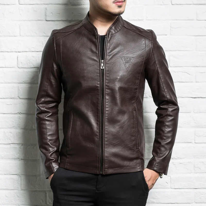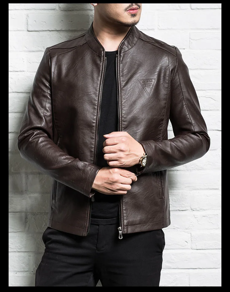 Мужская куртка из спилка, Новое поступление 2022, весна и осень, облегающая мужская кожаная куртка на молнии, черная, коричневая куртка для мальчиков-подростков P05