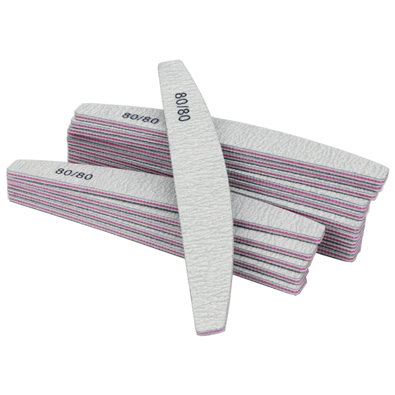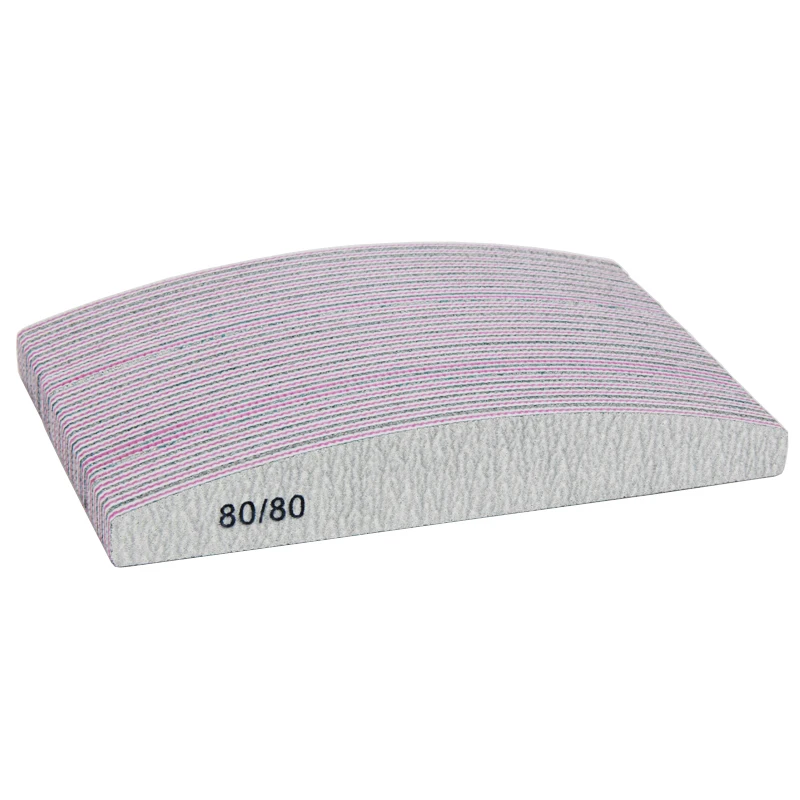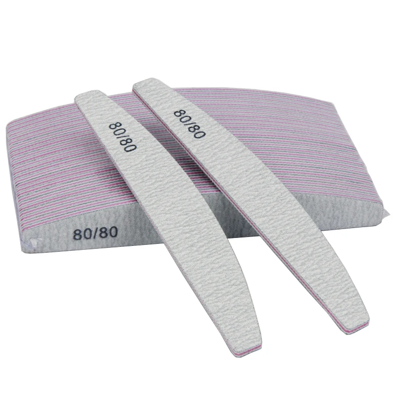 10 шт.лот, двусторонняя пилка для ногтей в форме полумесяца, 8080 Грит, серая Наждачная доска, пилочка для ухода за ногтями, инструменты для маникюра
