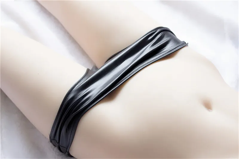Эротическое нижнее белье, сексуальные трусики с вырезами из лакированной кожи, трусики с открытой промежностью с дырками, женские трусики для БДСМ секса