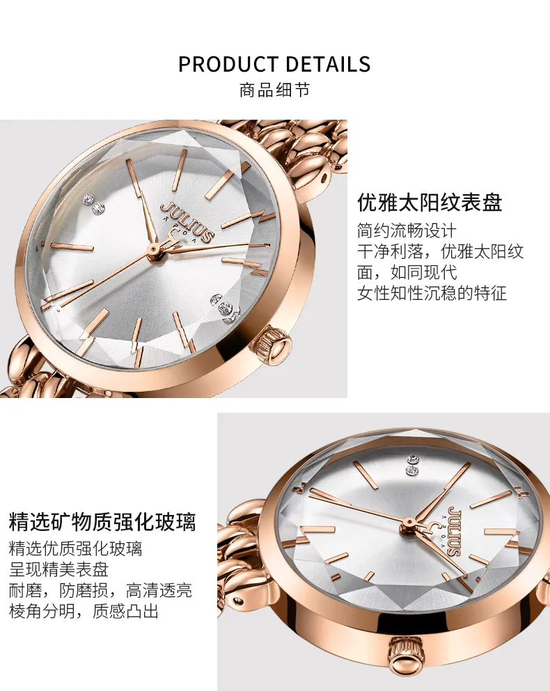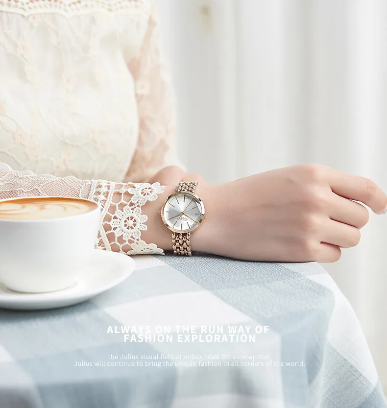 Новинка, 4 цвета, элегантные женские часы в японском стиле, кварцевые женские часы, изящный модный металлический браслет, подарок для девочки, Julius Box 1193