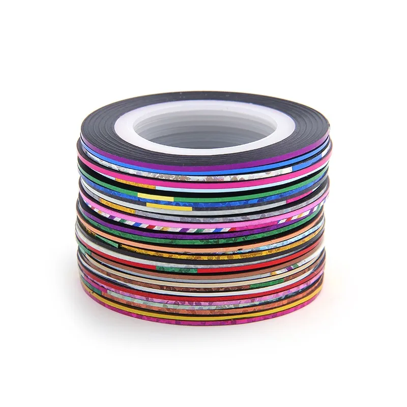 30 рулонов + 1 чехол для ногтей, многоцветные полоски, клейкие наклейки для ногтей, украшения для маникюра, Советы DIY