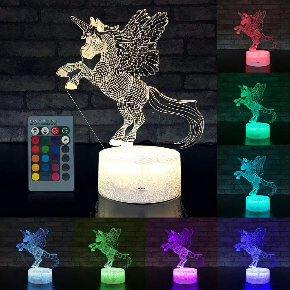 Пульт дистанционного управления и сенсорным экраном Управление 3D светодиодный ночной Светильник Единорог-серия 7 / 16 Цвет изменить светодиодные настольные лампы, детский подарок на Рождество, украшение дома