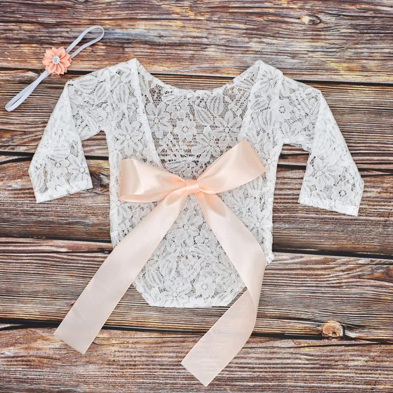 Реквизит для новорожденных; Хлопковый комбинезон для новорожденных; Комбинезон; Реквизит для фотосессии для малышей; Красивый кружевной комбинезон с длинными рукавами; Великолепный дизайн с открытой спиной