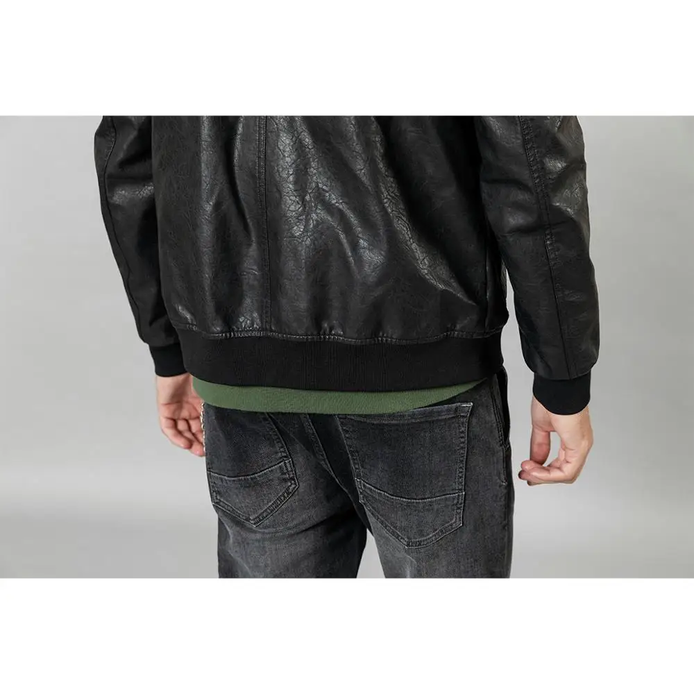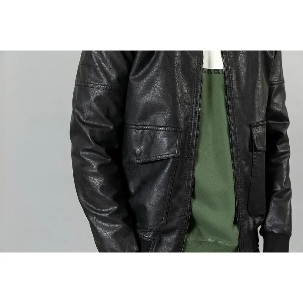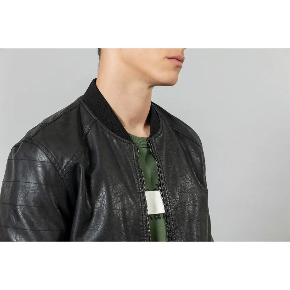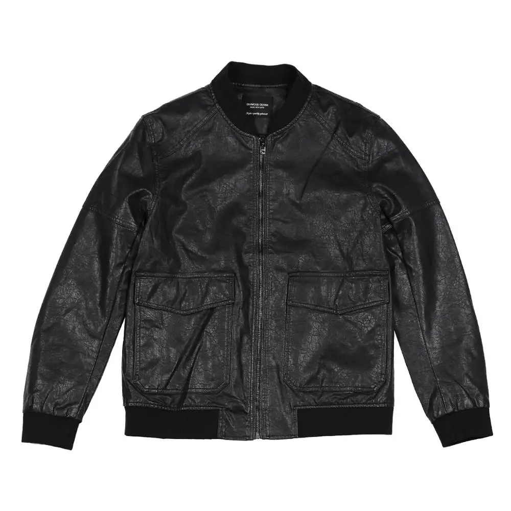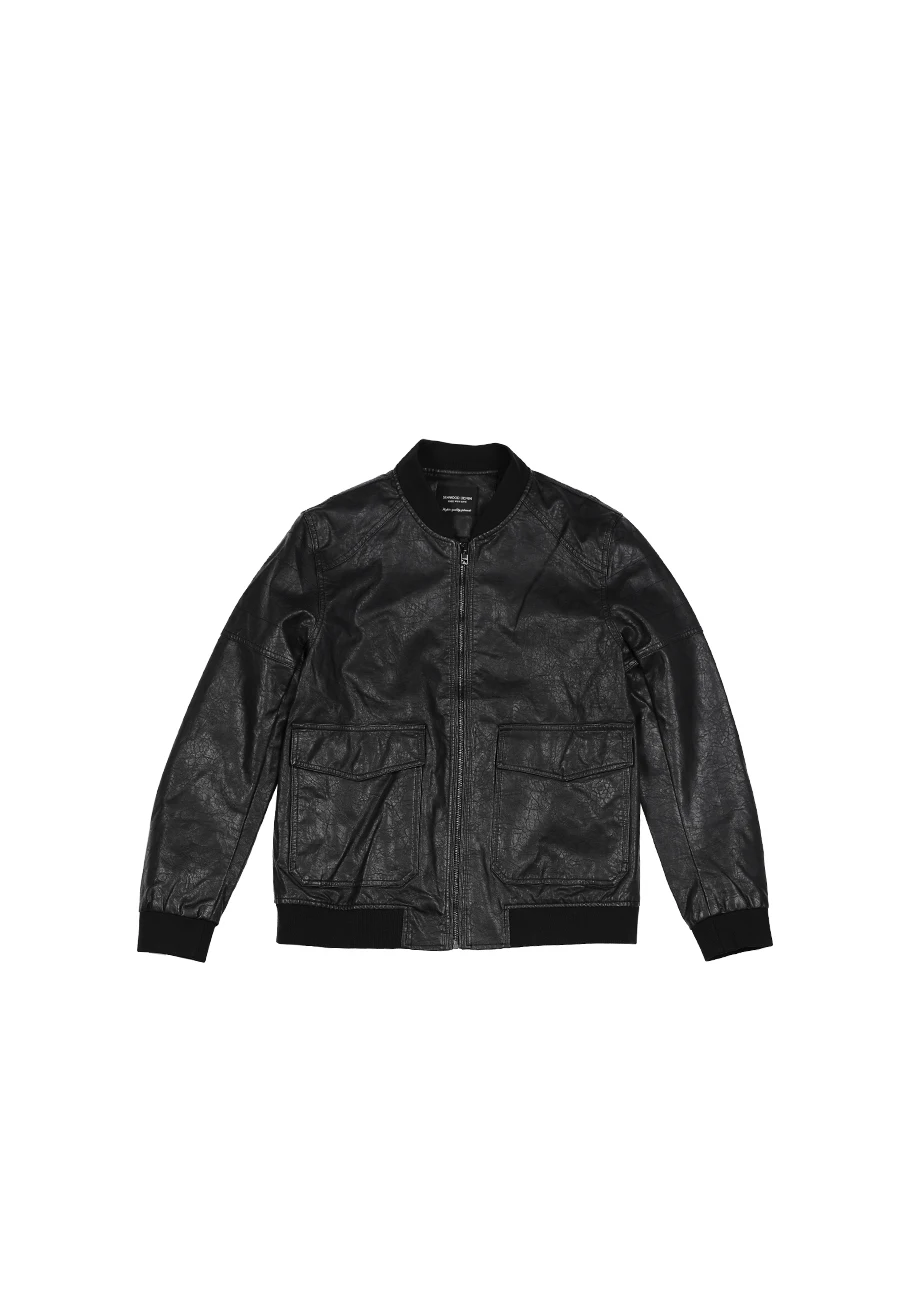 Куртка-бомбер из искусственной кожи, с карманами, на осеньзиму, SI980570, 2021