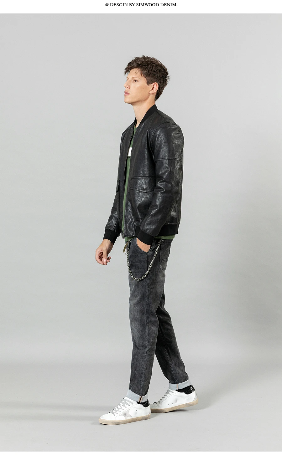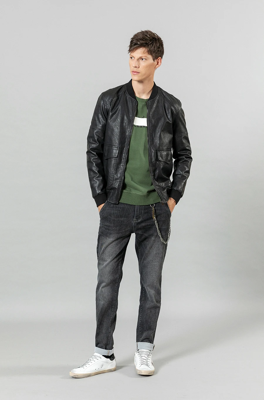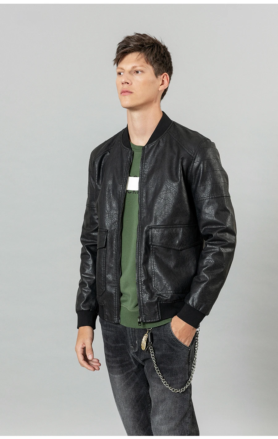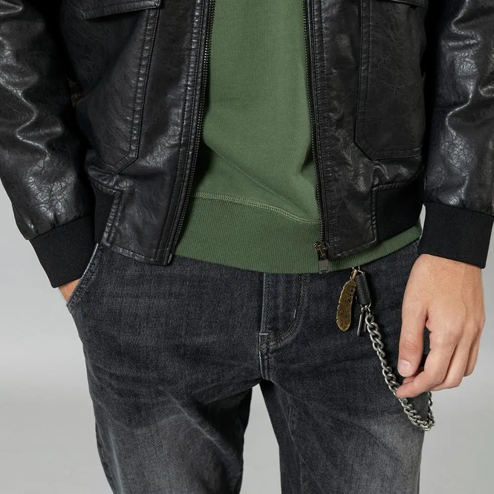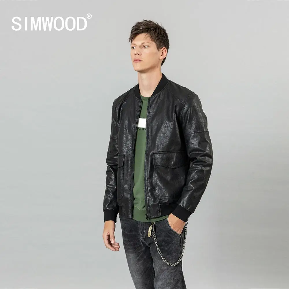 Куртка-бомбер из искусственной кожи, с карманами, на осеньзиму, SI980570, 2021